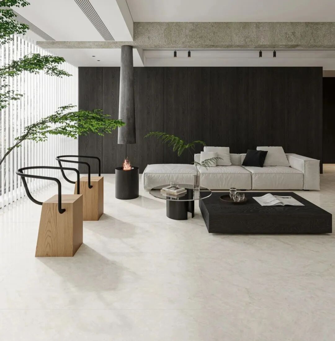 视觉效果上,臻石釉能够精准还原天然石材的纹理、色泽和肌理,使纹理色彩过度自然、层次分明,同时赋予釉面平滑柔顺的触感和舒适宜人的光泽,结合微雕工艺,无需抛光打磨即可呈现原生自然质感,营造出简洁、纯朴、素雅的空间氛围。