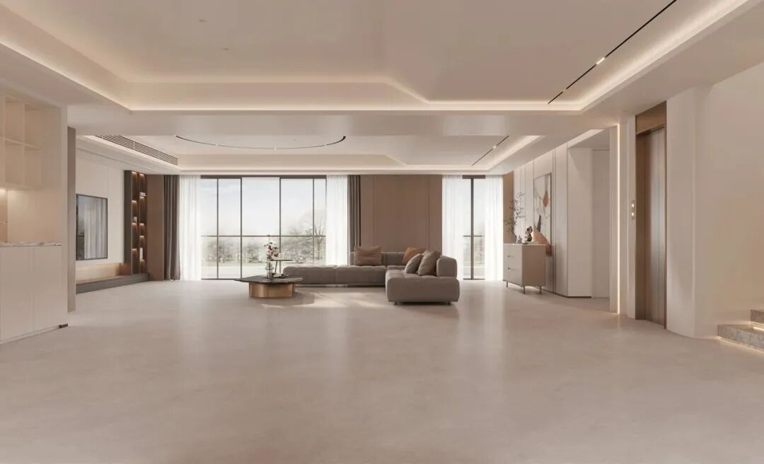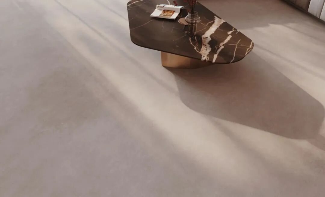 超平釉是陶企用于提升瓷砖平整度和品质的技术。在全抛釉生产时,将最后一道淋透明釉工序的釉层厚度增加,一般全抛釉的透明釉厚度为0.5—1毫米,而超平釉可达2—3毫米。这层加厚的釉层有助于填补砖面微小凹凸,为后续抛光提供更平整的基础。抛光环节,区别于传统全抛釉的软抛工艺,超平釉可采用硬抛,通过更高压力和精度的研磨,使砖面达到极高的平整度,有效消除普通全抛釉常见的水波纹缺陷,同时提升釉面的光滑度和镜面效果。