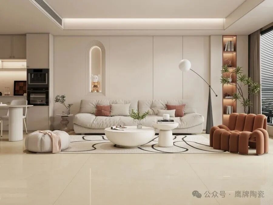 少即是多,在这里,每一处留白都是为生活腾出的余地;鹰牌陶瓷产品砖面的舒适光感与原生纹理得以最大化呈现——简约和谐,却不失高级感。