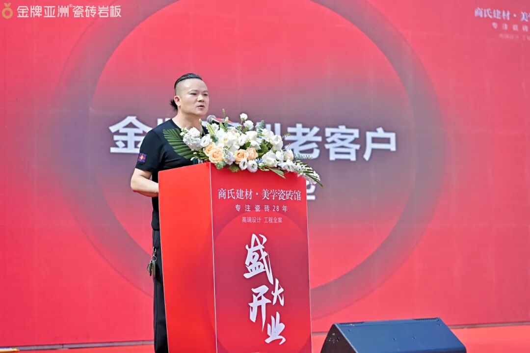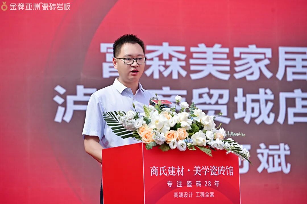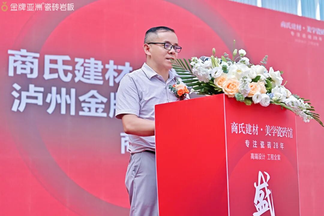 金牌亚洲营销中心营销三区大区经理李勇作为总部代表,为泸州金牌亚洲的盛大开业作致辞,李总表示,金牌亚洲一直致力于让消费者的理想人居空间得到更完美的呈现,本次泸州金牌亚洲的焕新升级,更是体现了金牌亚洲蓬勃的生命力与发展力,相信在金牌亚洲总部的引领与泸州金牌亚洲的精心运营之下,定能为广大消费者提供更舒适的选砖体验和更优质的家居生活。