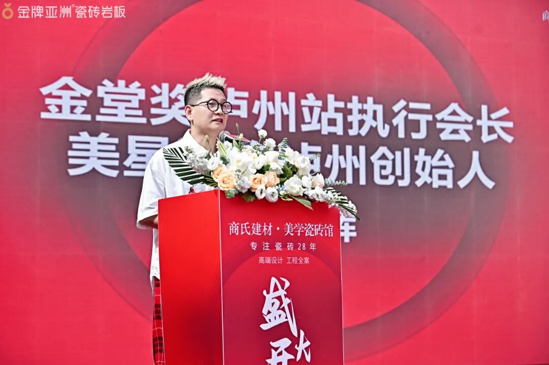 金堂奖泸州站执行会长·美星装饰泸州创始人邓美辉对泸州金牌亚洲的盛大开业表示热烈的祝贺。邓老师表示泸州金牌亚洲在当地一直是优秀高端建材品牌代表,以优质的产品以及贴心的服务备受泸州广大消费者的认可,本次泸州金牌亚洲美学馆的全新升级,更是向设计师、消费者们展示材料美学的多种应用可能,期待未来能够与金牌亚洲携手共创,让更多高质创意落地生根。