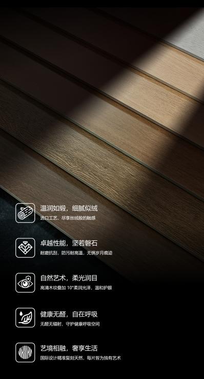 GDI艺术木纹始终坚持从自然本源中汲取创作灵感。在此次推出的胡桃木系列中,品牌设计团队亲赴北美林场,深入观察木材生长肌理与光影变化,最终精炼出晓风、兰亭、云栖、春木、叠影柚木和朗月六款花色,不仅还原了胡桃木的贵族气质,更赋予每一条纹路以诗意的叙事感。