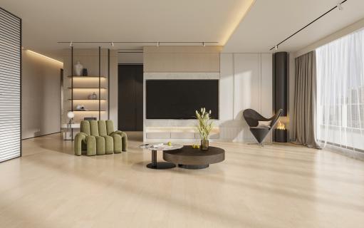 系列产品适用于客厅、卧室、书房等多种空间,能够营造出兼具自然韵味与现代美学的居住环境。在客厅空间中,统一的年轮纹理打造出自然延伸的视觉韵律;在卧室中,肌理随光影起伏,带来森林般的温柔与静谧;在书房内,浅灰、米黄基调适配专注氛围,木质呼吸感有效缓解视觉疲劳。
