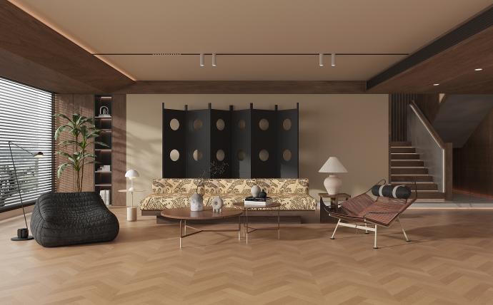 系列适用于客厅、卧室、书房等空间,通过鱼骨与人字拼纹的优雅延伸,营造出自然统一的视觉韵律,为现代家居注入兼具艺术性与功能性的地面解决方案。