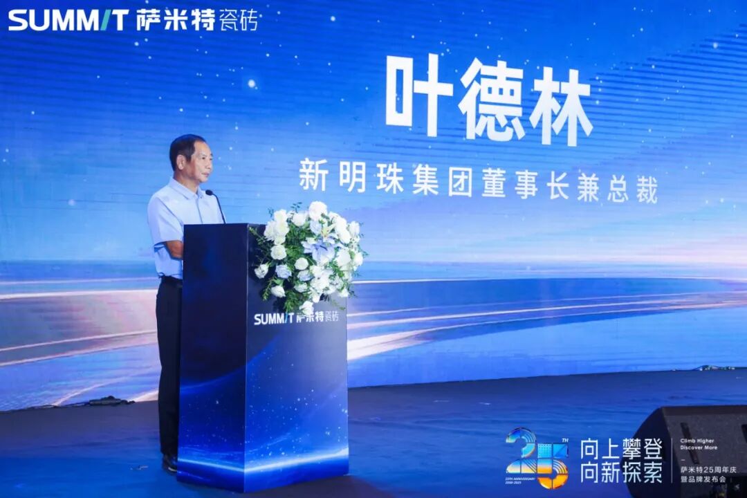 新明珠集团董事长兼总裁叶德林铿锵有力的致辞鼓舞了在场所有人。他回顾了萨米特瓷砖25年砥砺奋进的硕果。叶德林董事长表示萨米特的二十五年,是与集团战略同频共振的二十五年:这是一个里程碑,更是一个新起点,面对下一个二十五年,萨米特不仅仅要成为行业的领导者,更要成为一个有责任,有担当,有前瞻性的卓越企业。