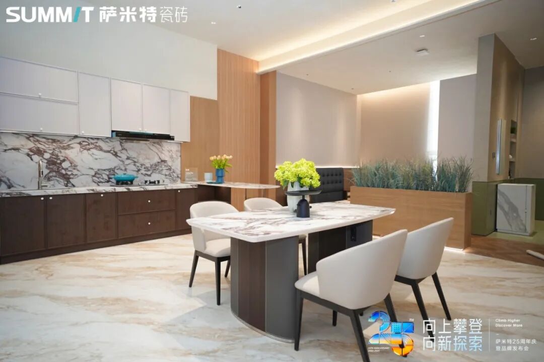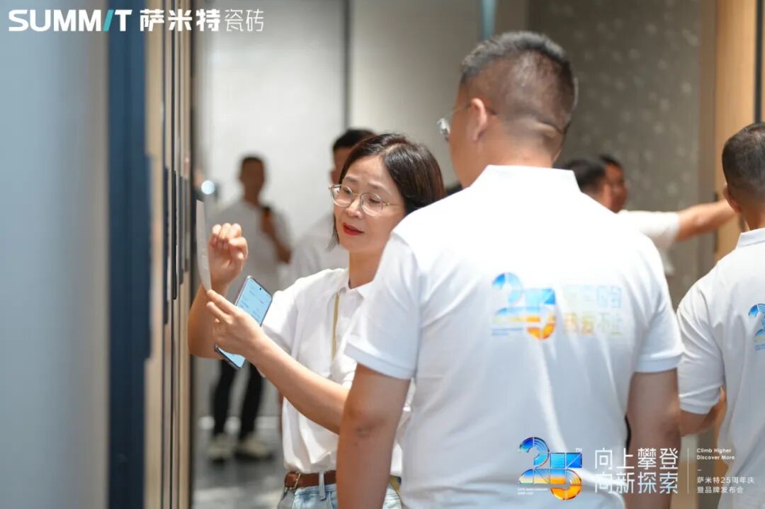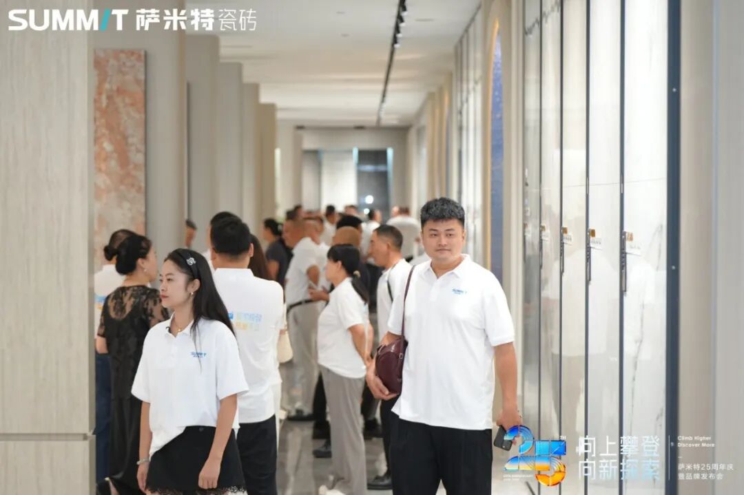 萨米特瓷砖品牌代言人王安宇亲临现场,新明珠集团董事长兼总裁叶德林;中国建筑卫生陶瓷协会副会长 宫卫、广东陶瓷协会会长 陈环;佛山市陶瓷行业协会会长 尹虹;天仪研究院创始人兼总裁 杨峰;新明珠集团董事、常务副总裁梁旺娟;新明珠集团副总经理、营销管理中心副总经理 高颂;萨米特瓷砖品牌总经理 王智勇与集团、品牌各部门高管,全国各地萨米特瓷砖经销商代表、合作伙伴、消费者以及媒体朋友们齐聚一堂,共同见证这一里程碑式时刻,携手开启向上攀登·向新探索 萨米特瓷砖品牌25周年探索计划!