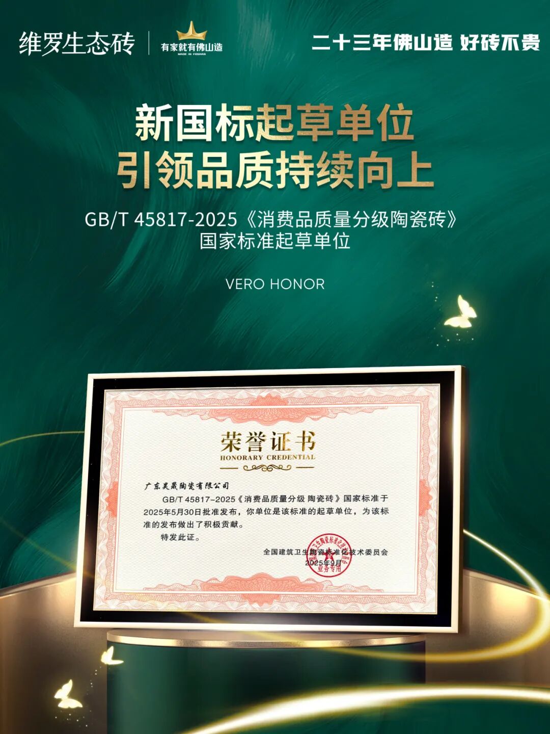 2025年10月17日,由中国建筑卫生陶瓷协会主办的《2025建筑陶瓷新质生产力大会》在佛山陶瓷总部基地召开。会上,正式揭晓依据国家新标准GB/T45817-2025《消费品质量分级 陶瓷砖》的首批质量测评结果。昊晟企业凭借卓越品质,多规格、多工艺产品率先斩获最高等级"5A级认证",成为行业首批获此权威认定的标杆企业,彰显"23年佛山造"的硬核实力。