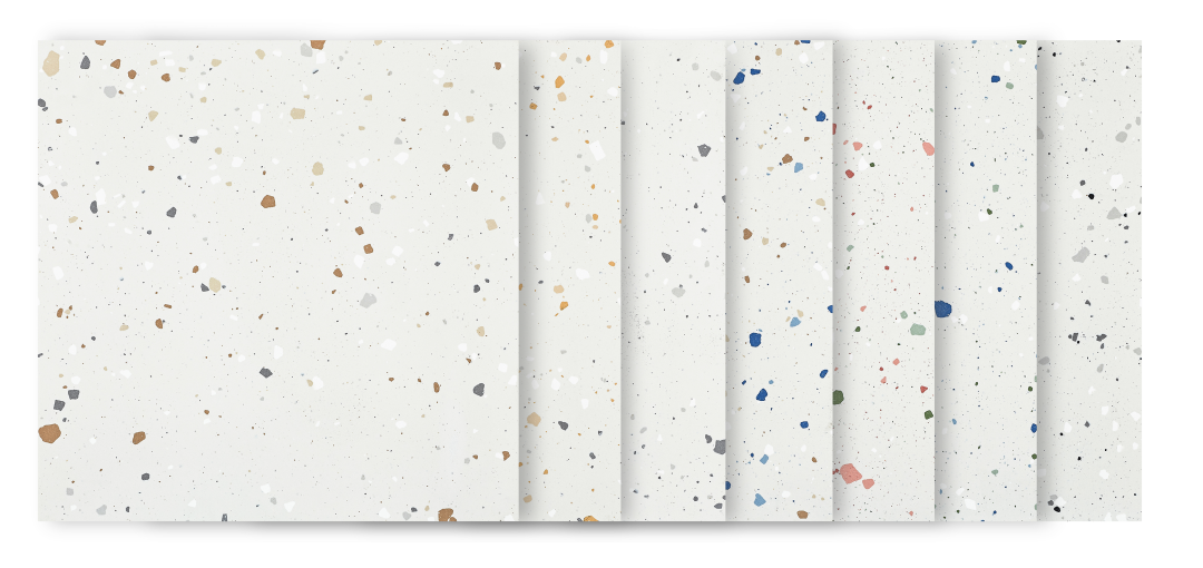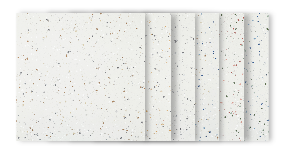 水磨石的经典撞色、颗粒的灵动跳跃、斑点的星点焕彩,三大细分系列润彩▪水磨石、润彩▪颗粒、润彩▪斑点覆盖多元审美,每一片砖皆因随机布料工艺成为 “专属设计”,让空间告别千篇一律,轻松适配全球不同区域的家装、工装风格需求。