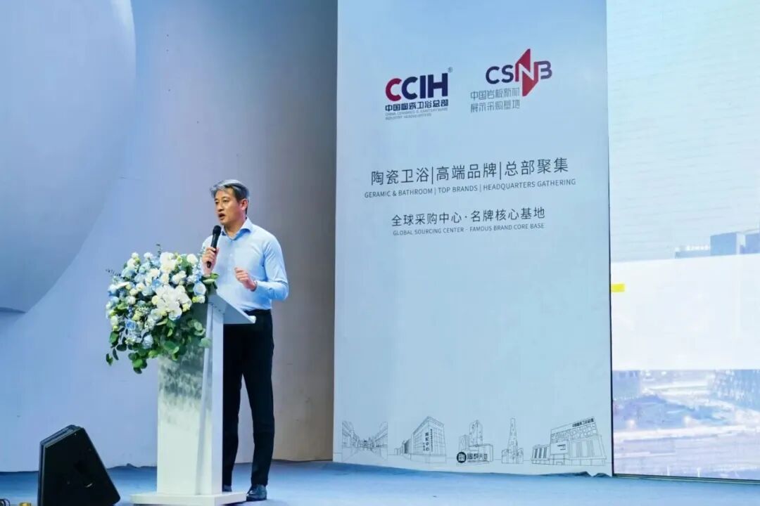 中国陶瓷城副总裁、中国陶瓷卫浴总部总经理汤洁明发表致辞,汤洁明表示,中国陶瓷卫浴总部将继续发挥平台作用,积极推动“新国标”的应用与落地,助力行业走向更高质量、更绿色化、更智能化的新阶段。