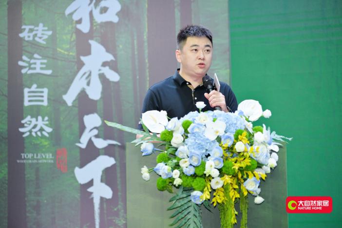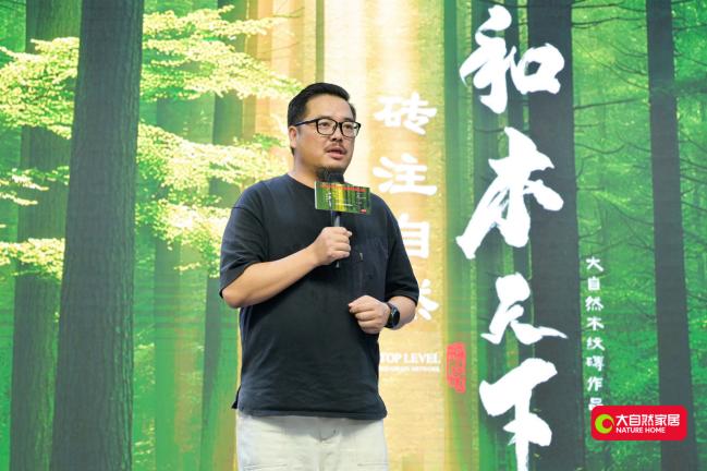 星系家居董事长、大自然木纹砖运营中心总经理王簪泽先生在致辞中,首先对到场嘉宾表达了诚挚感谢。他阐述了大自然木纹砖未来发展的“三步走”战略,并将始终以长期主义为指引,以产品力与伙伴关系为核心依托。其发言既体现了对产品品质的坚守,也展现了品牌深耕细分领域的战略定力。