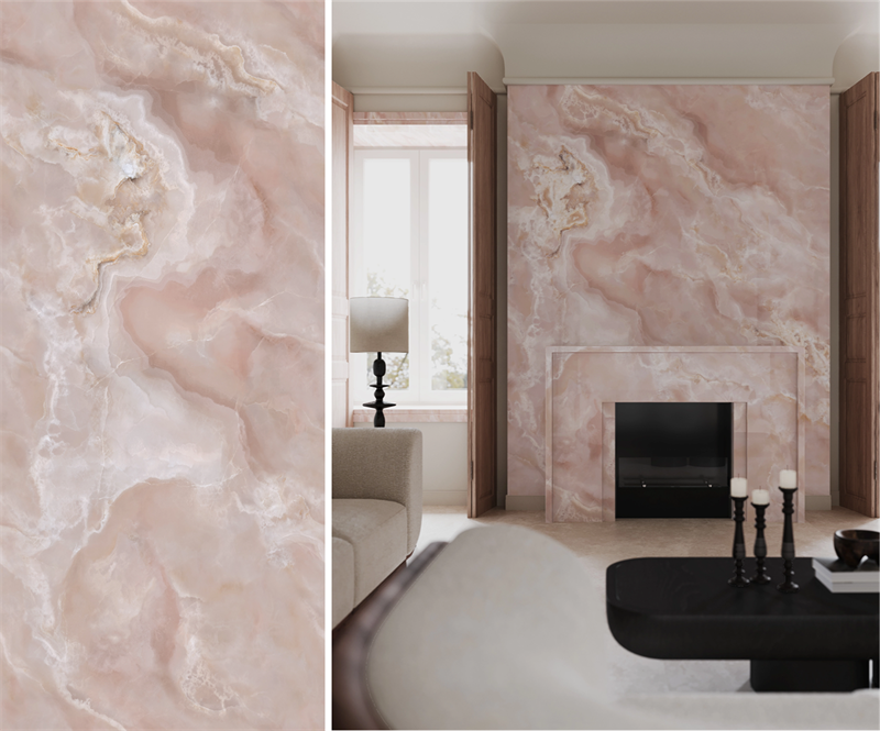 十余款新品花色各异、高贵典雅,色调高级且极具辨识度,为空间提供富有生命力的视觉韵律;延续玉石材料的天然质感,温润通透、柔和内敛、触感细腻,打造出静奢风的高级感、永恒感和舒适感,为大宅应用和设计师选材带来更多可能性。
