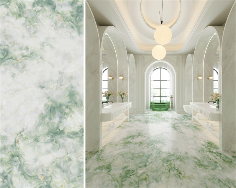 创新采用“微雕肌理面”工艺,以400目超细干粒为基础,搭配精准数码对位技术,复刻出天然玉石的细腻纹理,同时实现高难度色系与玉质通透感共存。
