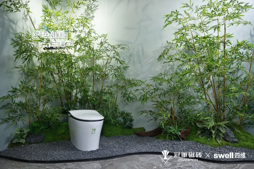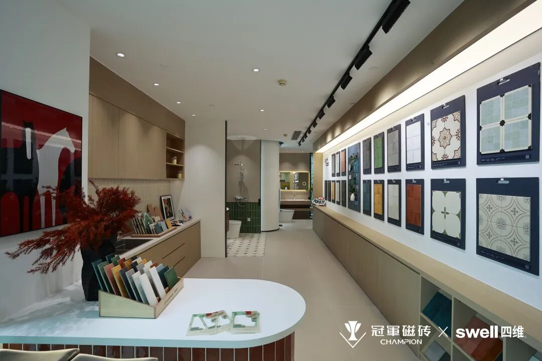 此次展厅呈现,冠军磁砖联合四维卫浴,