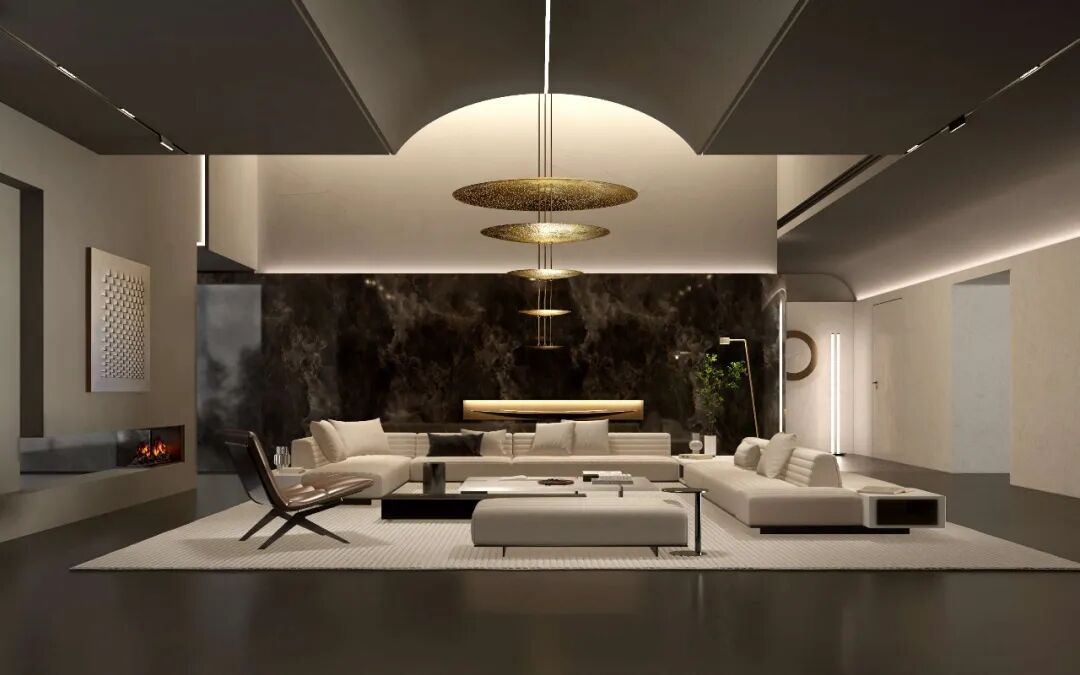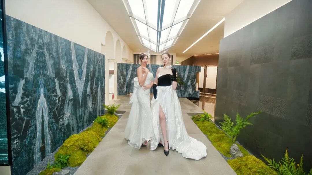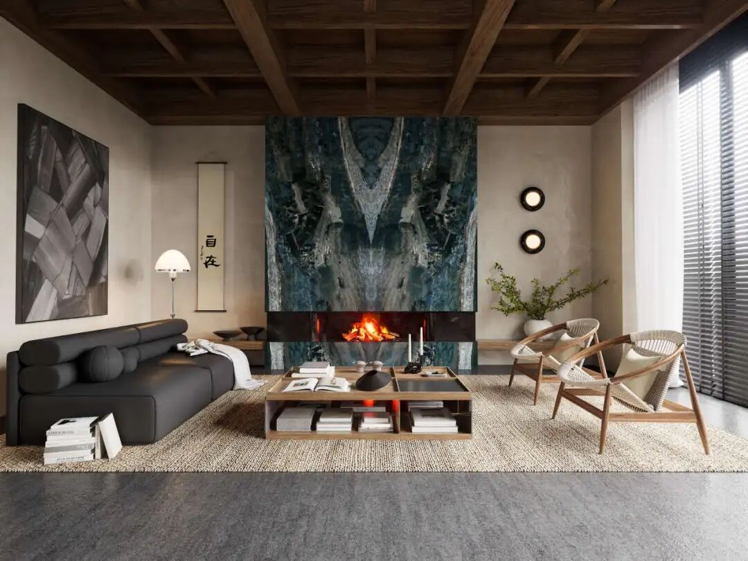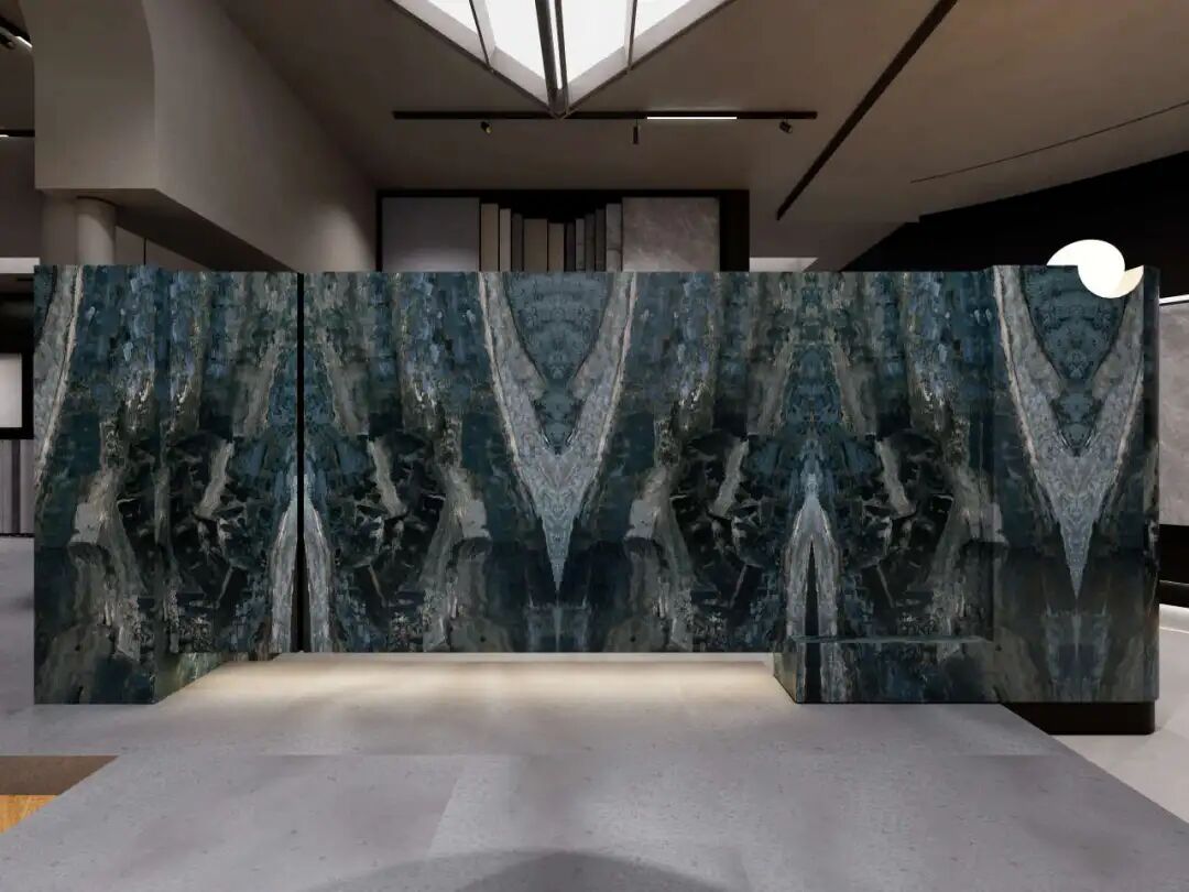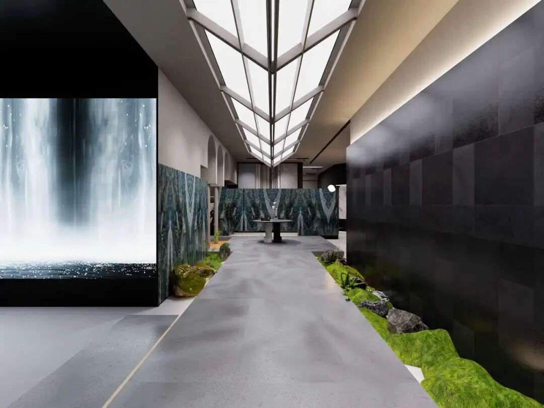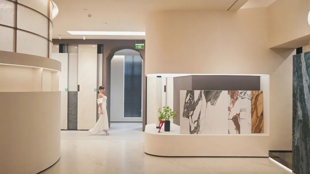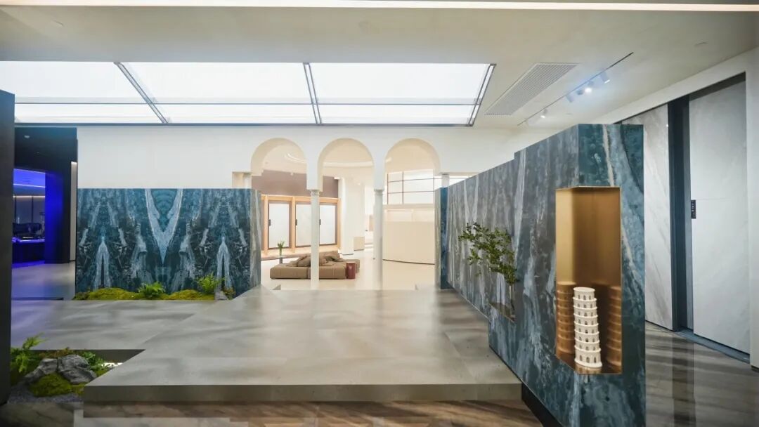 动态画屏弱化了天地边界,使整个空间成为流动的叙事媒介。在这里,岩板不再是背景材料,而是空间情绪的营造者、场景故事的讲述者。