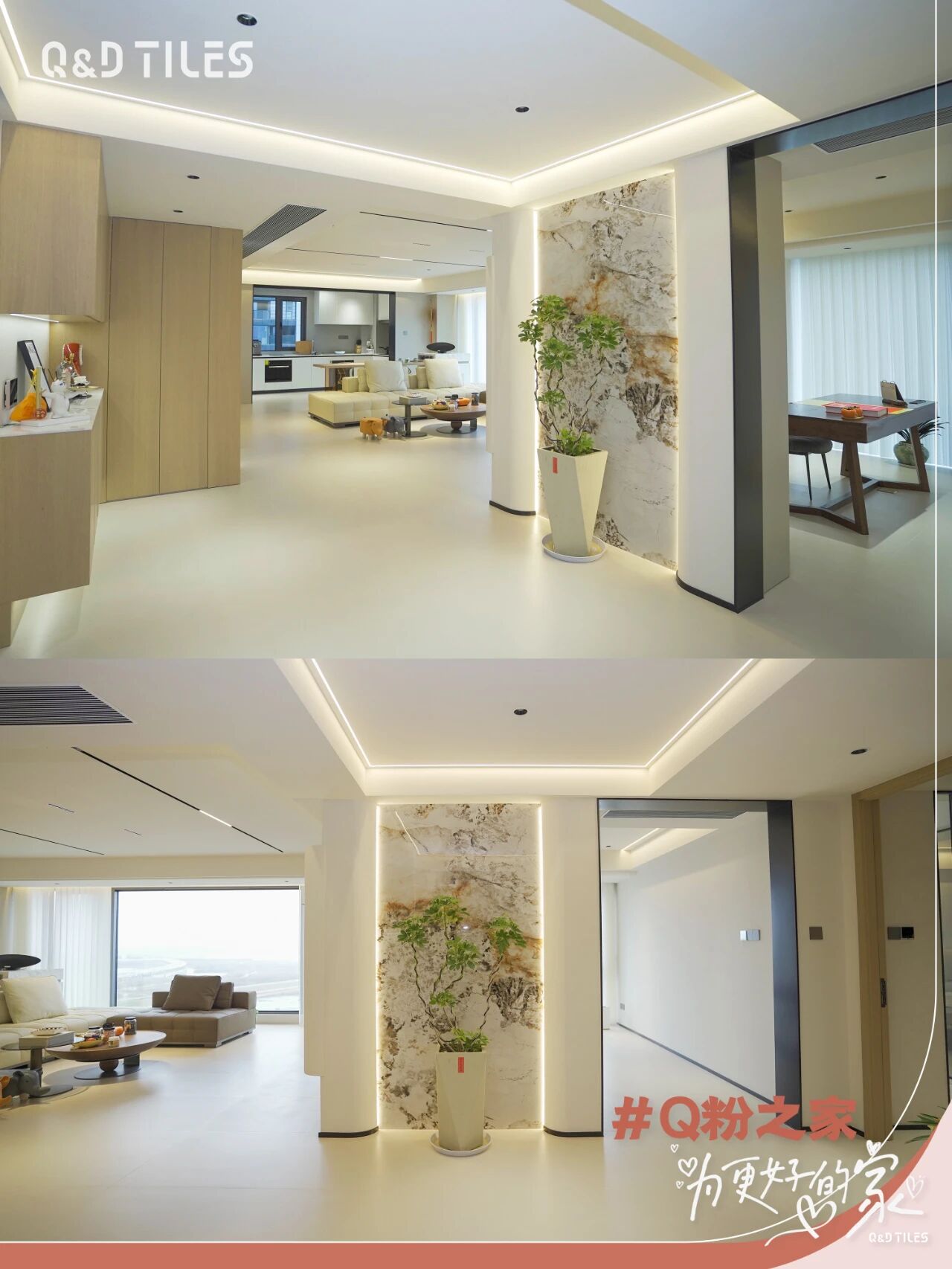■客餐厨通铺900×1800mm,砖缝少且不明显,空间整体更显大,耐磨防滑性能杠杠的UP