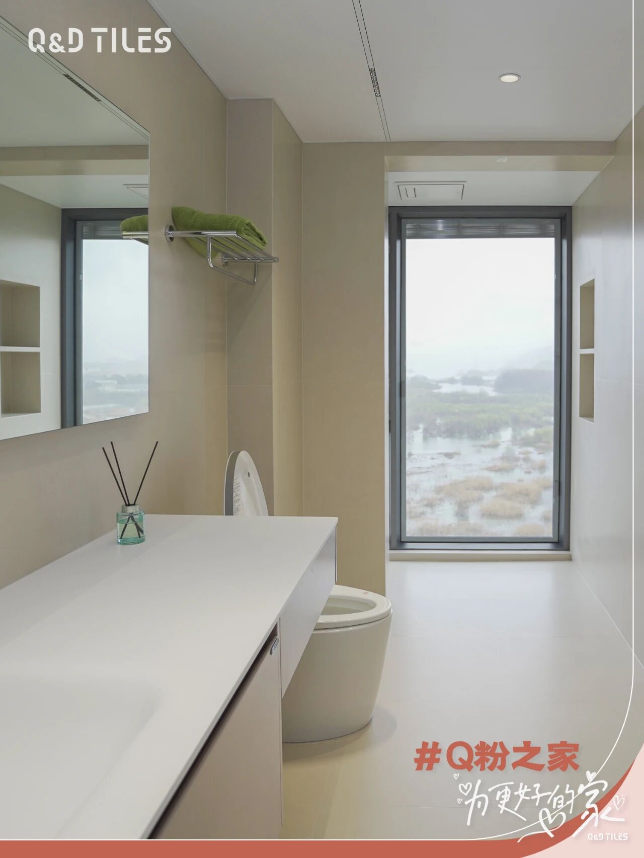 卫浴空间墙地还是选用【帕戈斯绒米】,子母规格配套,小空间也能一体化。墙地一体,能够在视觉上延伸空间,🪐极简耐看,关键是真的很好打理!
