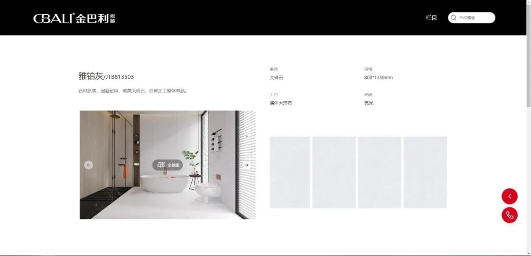 重构的产品展示体系,支持多角度查看、细节放大、场景应用展示,更提供720°VR功能,直观感受瓷砖在空间中的实际铺贴效果。