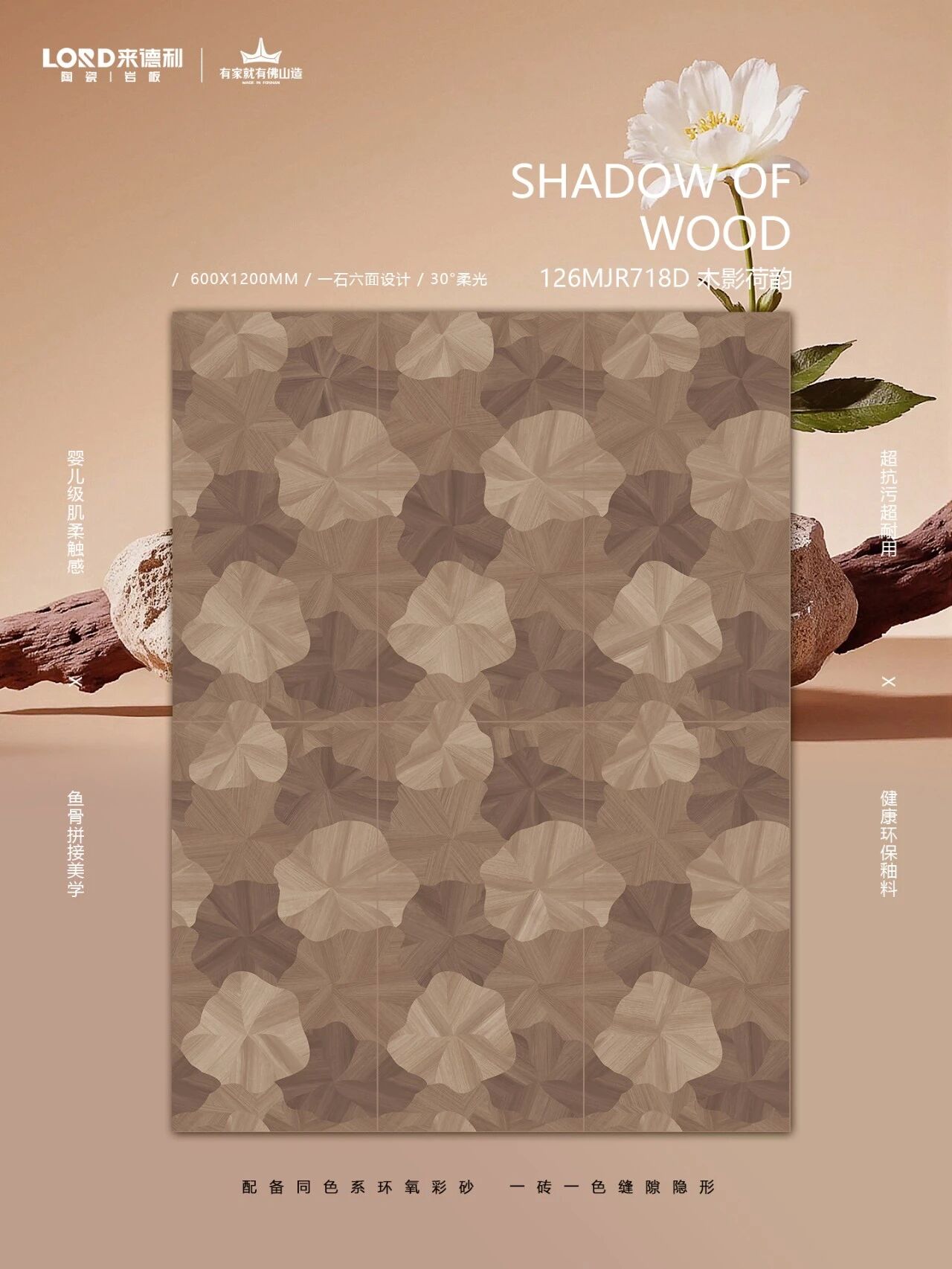婴儿肌级柔触+30° 丝绒柔光,砖面像晨露般柔和,既保留木质天然肌理,又让纹理在光影中立体如浮雕,给空间蒙上一层复古电影的柔焦滤镜。