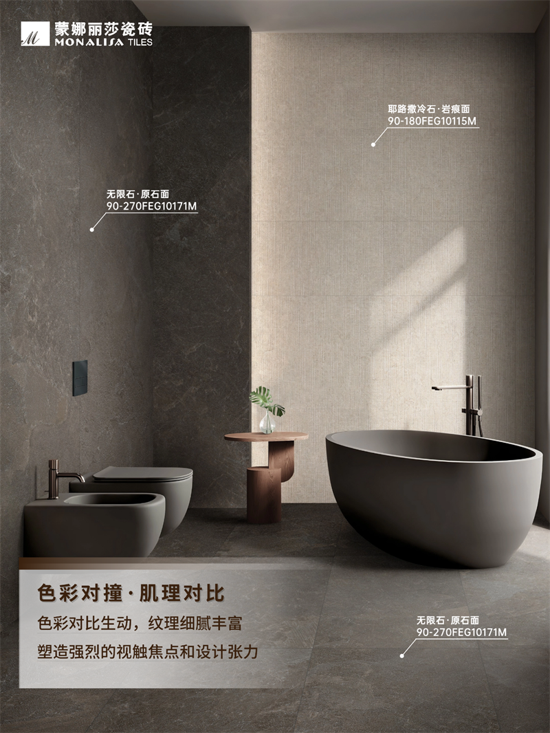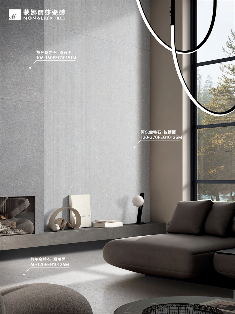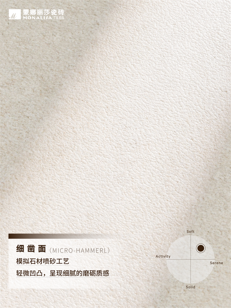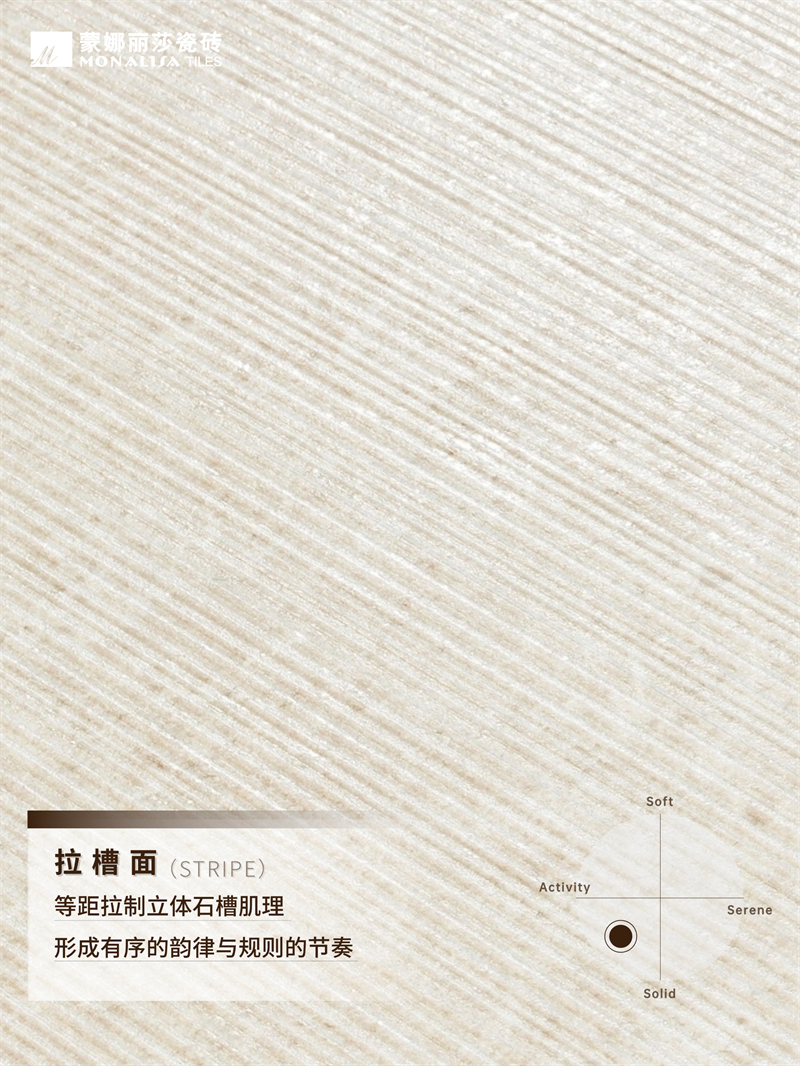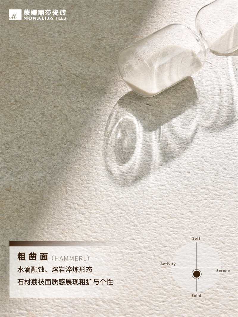 蒙娜丽莎无极·石界高端系列,结合空间的CMF设计情感表现研究,创造多元肌理设计体系,通过质感的变化,更新居者对材料、设计美学的感受与认知。