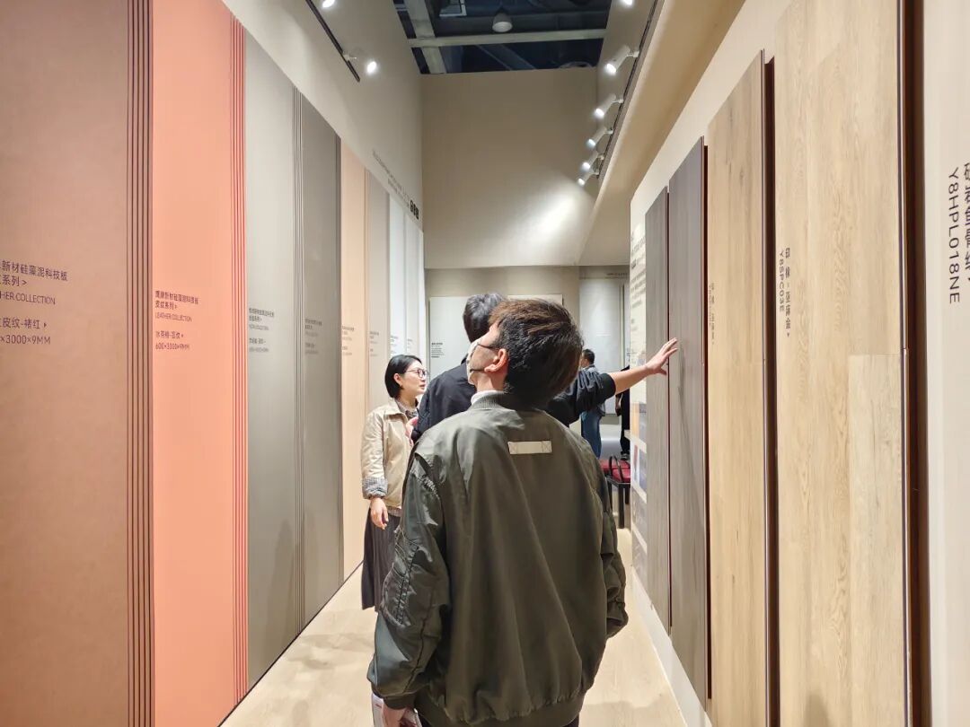 现场,马可波罗主要带来了品牌今年的主打产品——“当代仿古 经典未来”系列产品,该产品紧扣2025年度优雅治愈的流行色彩趋势,将敦煌雅丹的粗粝质感、威尼斯水城的柔光色调等经典元素,借由AI技术、数字釉面工艺及最新AI 数码微浮雕科技等技术工艺重新解构与重构。同时,提炼东方美竹、韵律长笛、时尚罗纹等3D立体纹理,再现自然造化下的自然质感与细腻效果,让用户享受视觉、触觉、质感的空间三重奏。