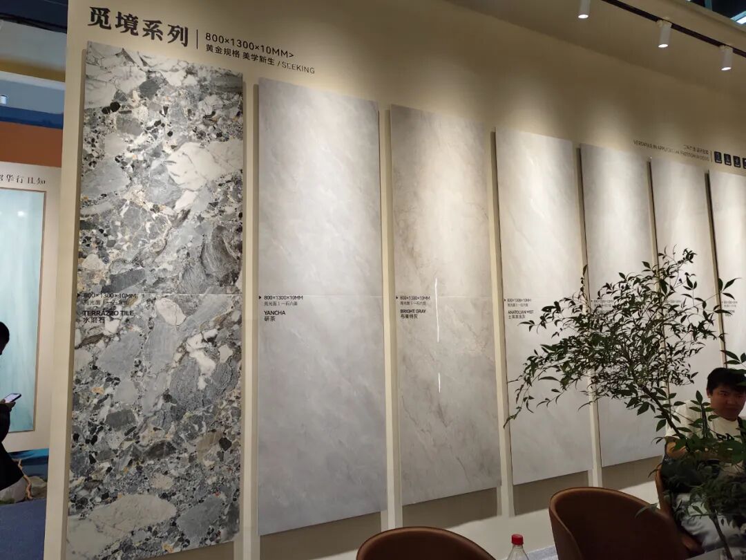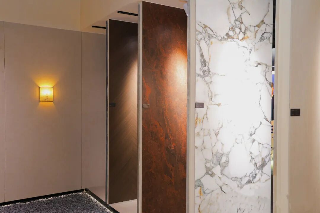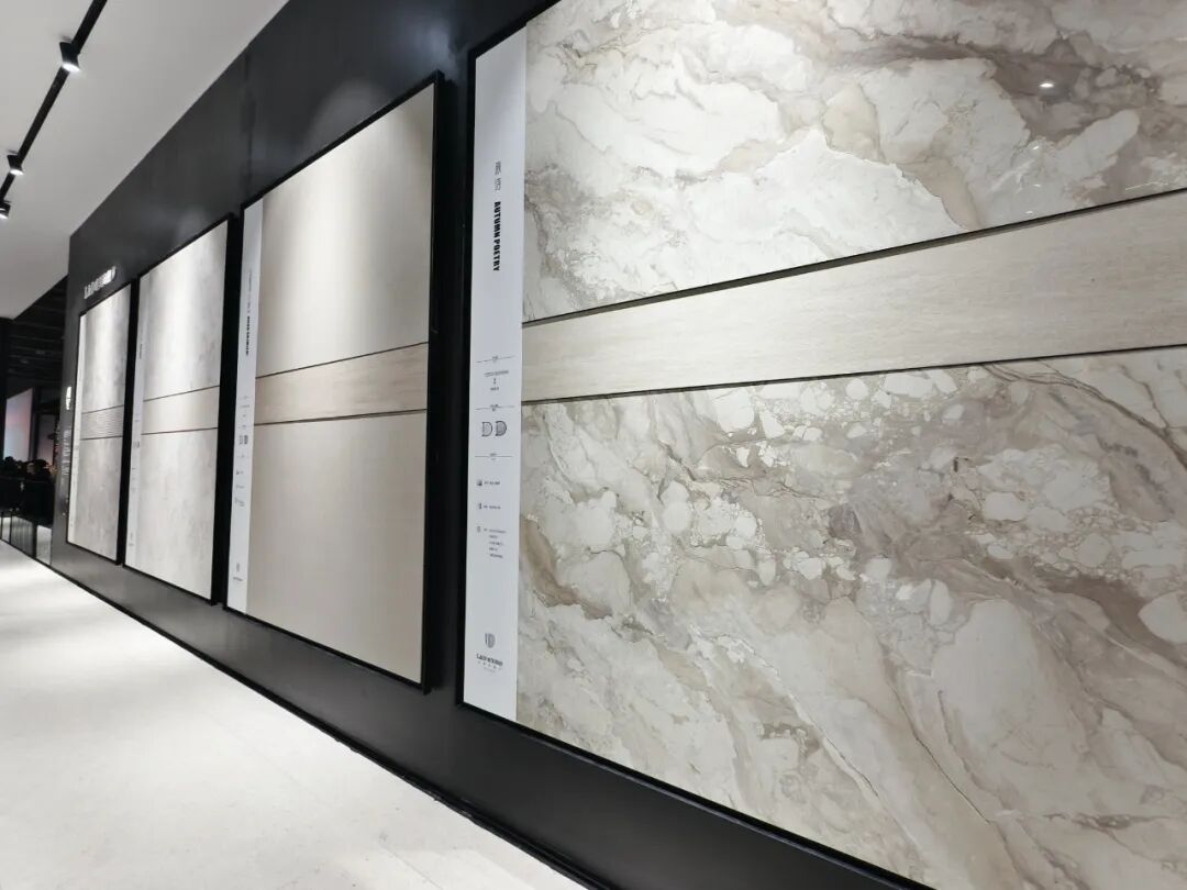 马可波罗展出产品规格涵盖1200×2700、900×2600、1200×1800、900×1800、 800×1350,750×1500、600×1200mm等多种规格,以材质、色彩的精妙组合,回应现代空间对质感与功能的双重诉求。