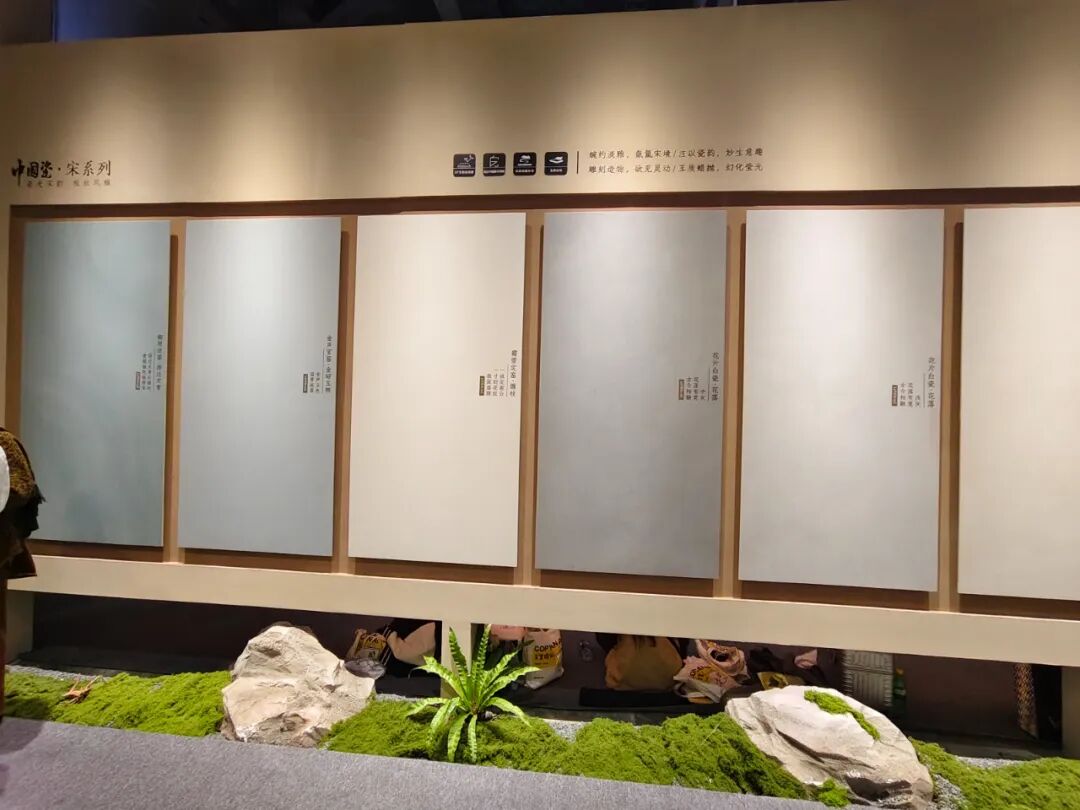 展馆主要呈现了品牌三大文化IP产品线。其中包含水墨京砖从第一代到第四代的产品演进,意象青花的第二代升级,以及岭南映像的完整设计矩阵。