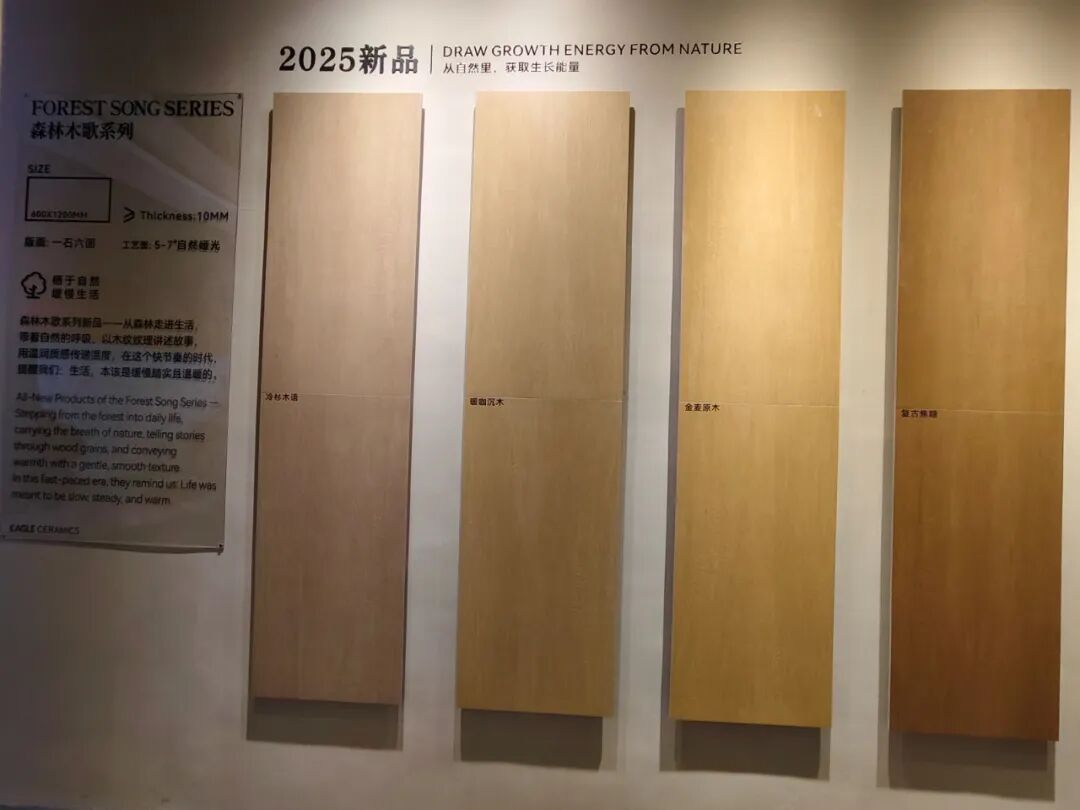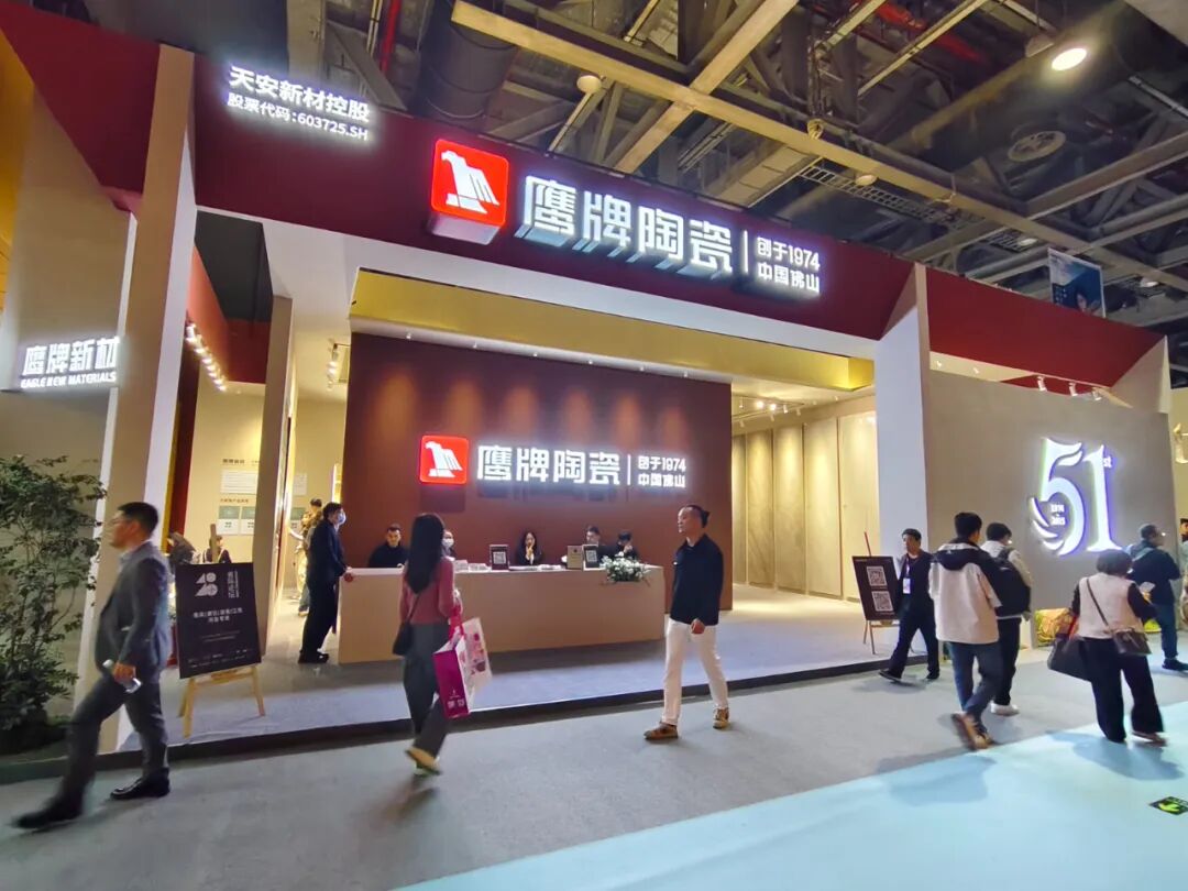 展会上,鹰牌携旗下明星产品重磅亮相,涵盖其中国瓷系列、觅境系列、森林木歌系列等陶瓷砖产品,以及鹰牌新材硅藻泥科技板、HPL防火板、SPC石晶地板、墙衣等新型环保饰面材料,以多元产品矩阵,满足一站覆盖墙板+地板焕新的需求。