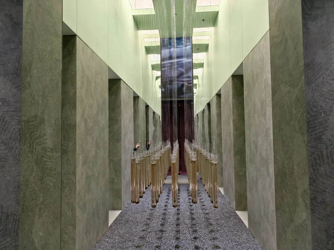 入境:入口以岩板结合丛林意象与光影LED装置,开启岩境”序章。观者沿径步入,沉浸于材质、自然与光交织的秘境,初步感受岩板作为空间载体所激发的场景想象与灵感启发。
