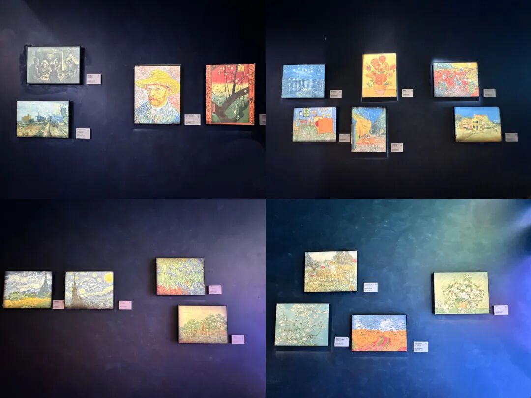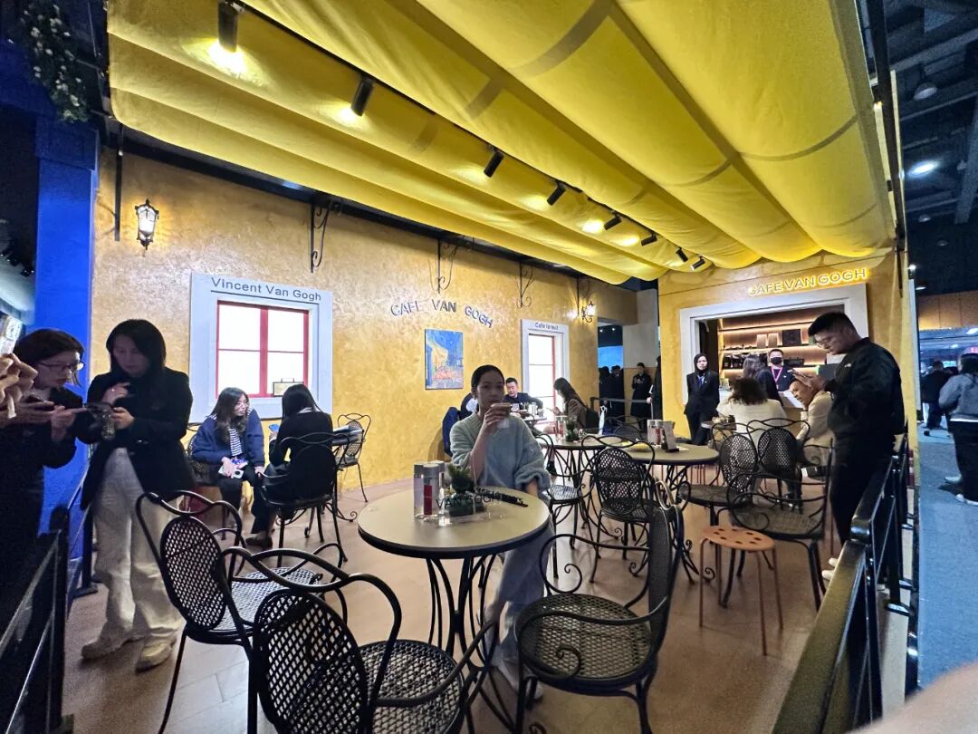 展馆入口,梵高质感岩板以梵高的《夜间的露天咖啡座》为蓝本,再现经典名作,打造沉浸式艺术场景。展馆内部,梵高质感岩板借助AI重述梵高故事,展示科技与艺术融合的新视觉语法。