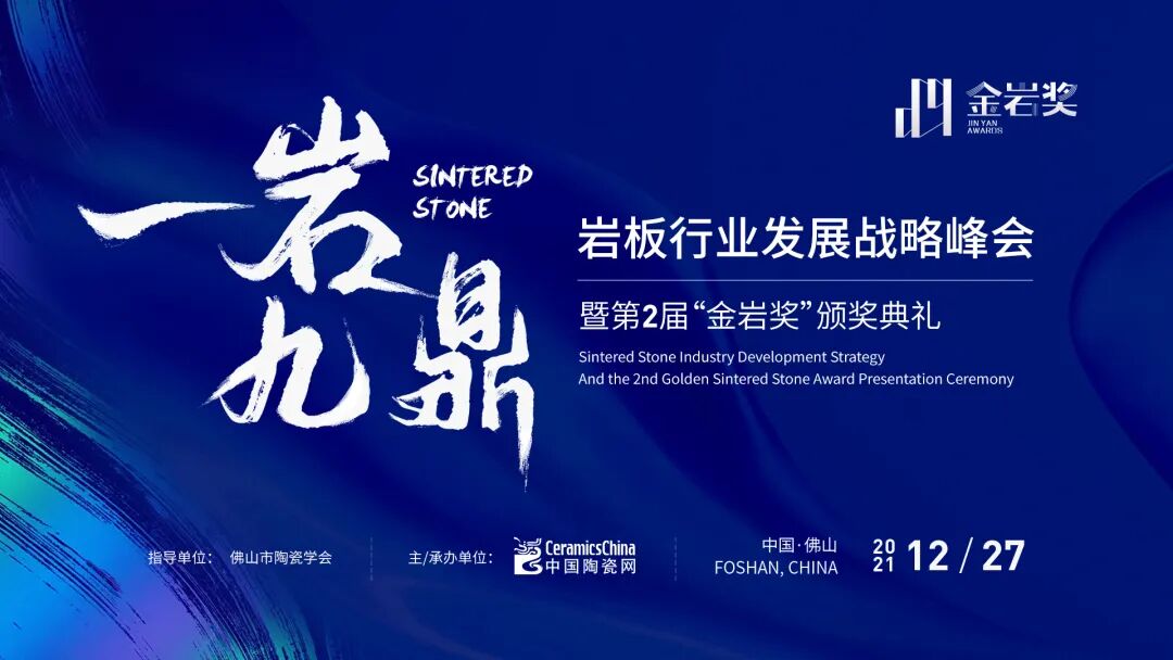 2021年12月27日下午,由佛山市陶瓷学会指导、中国陶瓷网主办和承办的岩板行业发展战略峰会暨第二届“金岩奖”颁奖典礼以“一岩九鼎”为主题在佛山举行。设计&石材圈老炮、家居建材领域战略营销专家、头部岩板品牌代表齐聚一堂,探讨岩板的发展之道。