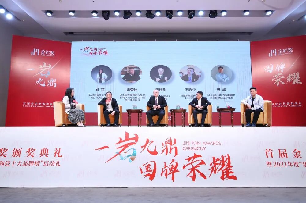 2020年12月24日,由佛山市陶瓷行业协会指导、中国陶瓷网主办和承办的首届“金岩奖”颁奖典礼以“一岩九鼎,国牌荣耀”为主题在佛山举行。行业专家学者、铺贴领域大咖、互联网公司大牛以及头部岩板品牌代表轮番上阵,共话“岩板生态”。