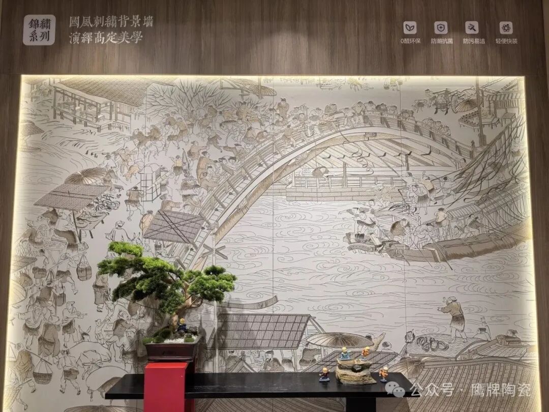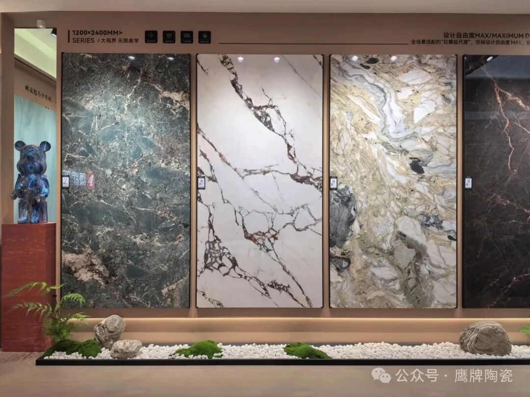 怀化鹰牌奢华馆聚焦呈现鹰牌陶瓷中国瓷系列、天工系列、鹰牌岩板、鹰牌硅藻泥科技板等鹰牌旗下高端高质产品,通过沉浸式的场景设计、艺术化的空间叙事与专业的光影呈现,让每一片瓷砖和板材的肌理、色泽与质感得以极致表达。