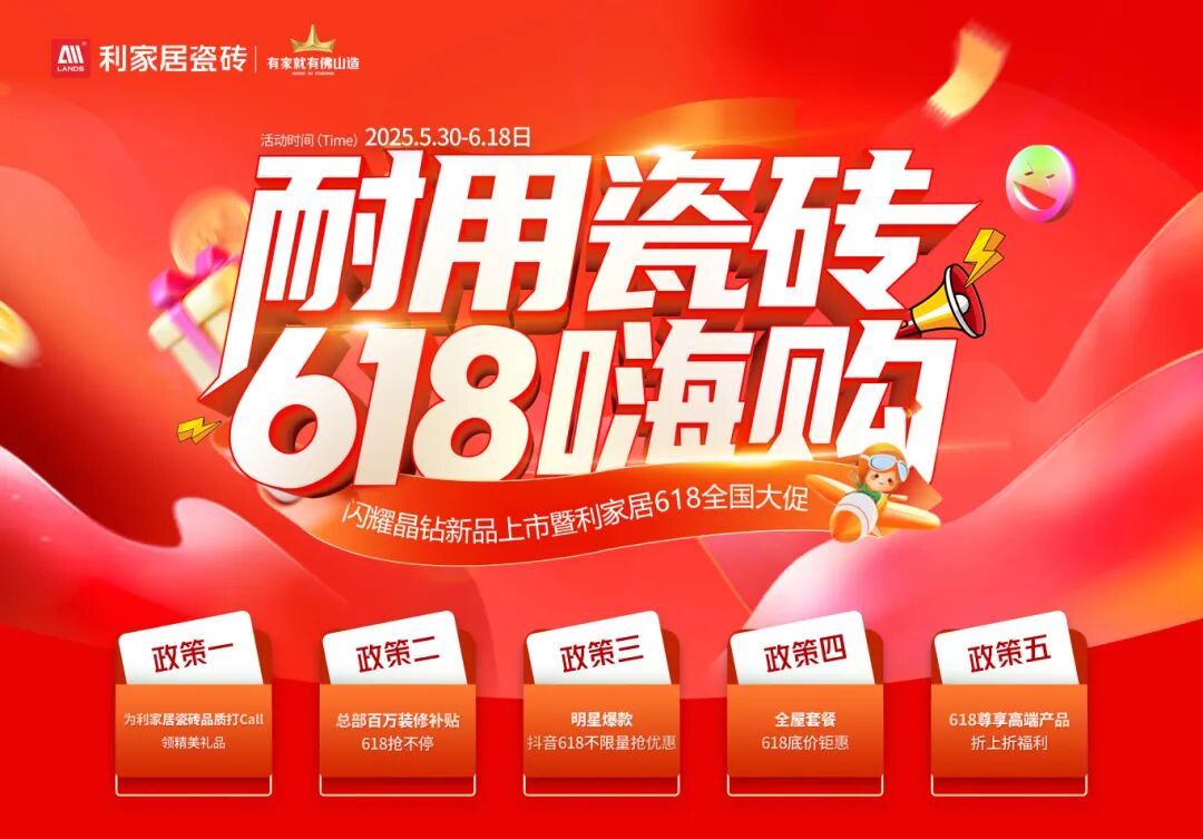 “耐用瓷砖 618嗨购”2025闪耀晶钻新品上市暨利家居618全国大促!在活动开展期间,利家居各大销区紧密围绕总部战略部署,积极响应总部号召,以高度的责任感和使命感厉兵秣马、精心筹备。通过强化团队建设、优化营销策略等方式,各销区全力以赴、积极行动,深入终端市场展开激烈角逐,将618活动的热度推向新的高度。