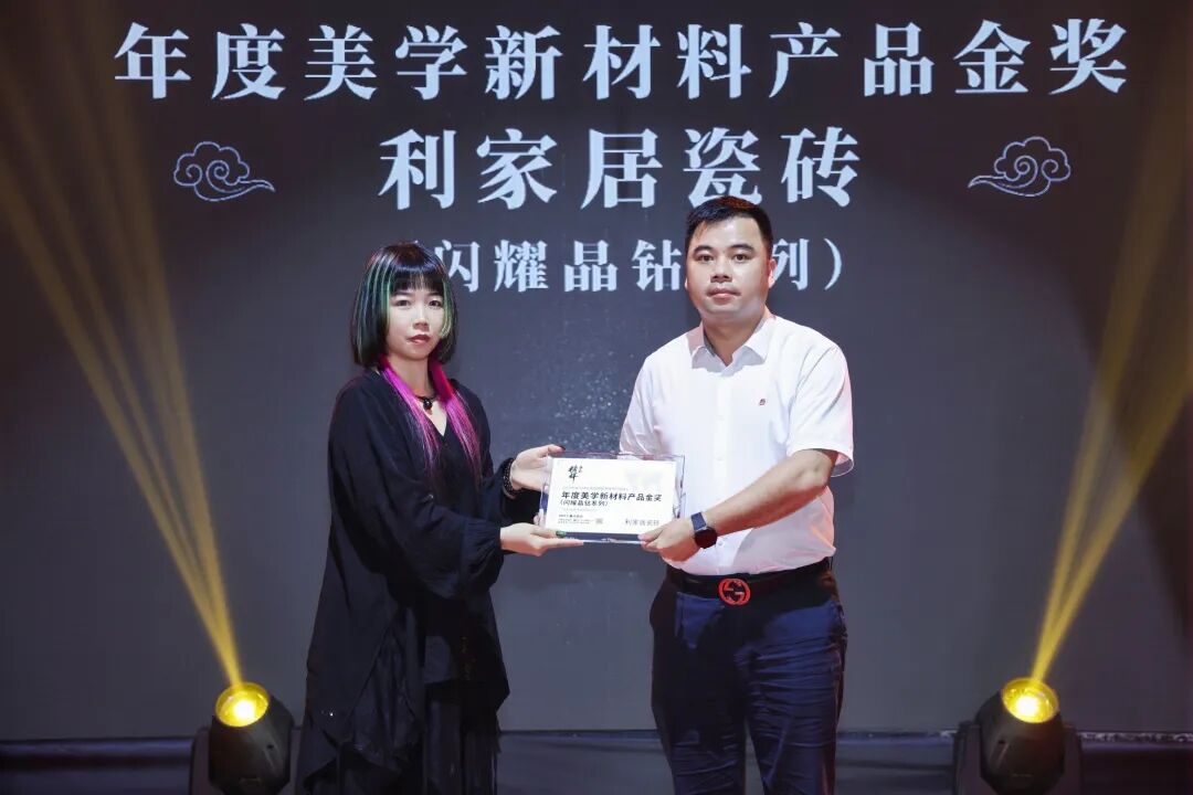 广东利家居陶瓷有限公司凭借其卓越的创新实力与对美学的不懈追求,荣获“年度美学新材料产品金奖”(闪耀晶钻系列),绽放品牌之光,释放榜样之声!