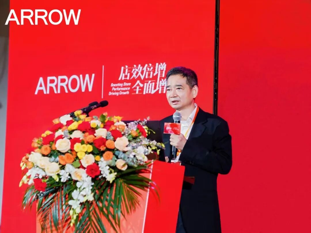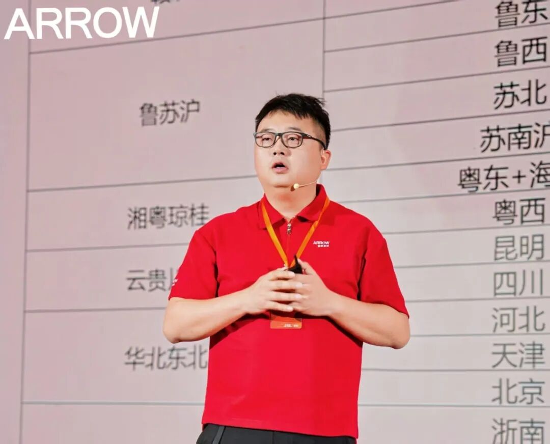围绕终端门店的变革趋势,箭牌瓷砖事业部展厅设计总监吴琦进行了专题分享。他指出,终端门店正经历从产品陈列向场景体验的转型升级,并介绍了全新的A6 pro标准门店模型,强调将通过空间设计、场景营造与店态升级,系统提升终端形象与体验价值,助力经销商以“空间美学”驱动销售转化。