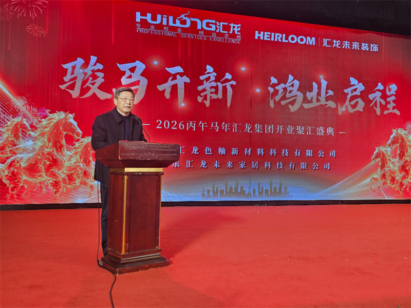 淄博市原人大常委会副秘书长、淄博市老促会副会长兼秘书长张波等嘉宾到场祝贺并致辞,对汇龙集团多年来坚持技术创新、深耕实业、履行社会责任,热心公益事业的担当精神表示肯定。张秘书长说,汇龙色釉新材料与未来家居双板块联动,契合淄博新材料产业规划与绿色家居发展方向,期待企业以开业为新起点,持续强化研发投入、提升核心竞争力,带动产业链上下游协同发展。汇龙集团双主业布局,精准把握产业升级风口,以技术创新打通材料端与应用端,有望成为行业协同发展的标杆企业。对汇龙集团扎根实业、勇于创新的发展路径给予高度评价,并勉励企业在新的一年把握机遇,为地方经济高质量发展贡献更大力量。