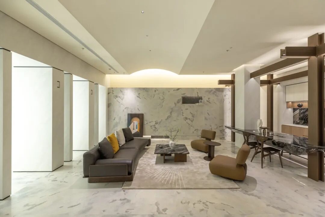 KMY总部新展厅荟萃众多新品系列,以“化繁为简、大美轻奢”为设计脉络构建出贯穿整体的沉浸场景,深刻诠释对高端人文生活的理解与洞察。从大堂至各功能空间,轻奢格调与休闲氛围汇融,共同营造出一处有温度、有生命力的体验场域。