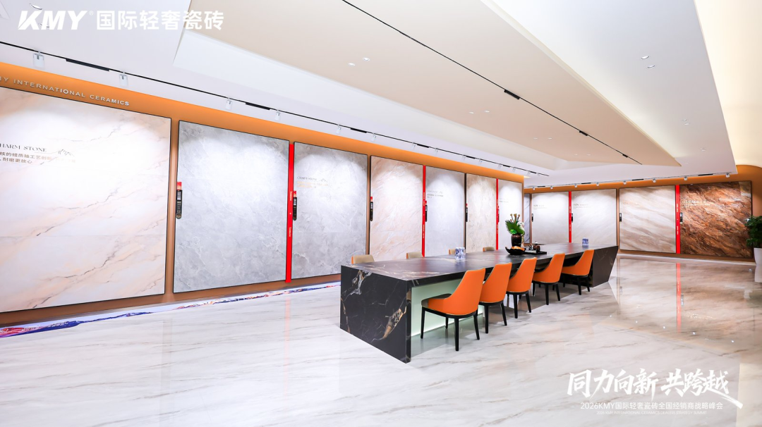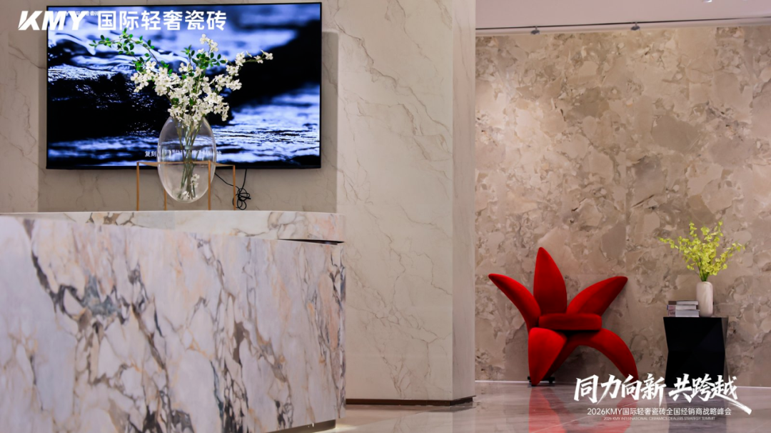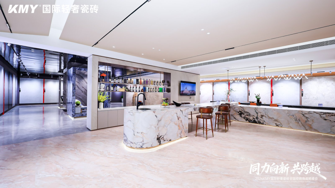 2025年末,伴随2026全国经销商战略峰会召开,KMY国际轻奢瓷砖总部新展厅也同步启幕。启幕仪式上,KMY品牌事业部常务副总经理丁彬强调,未来,KMY将在展示设计上持续创新进化,打造轻奢时尚且兼具人文温度的场景效果,革新终端消费体验,通过卓越的产品应用价值与展示效果,高筑终端市场的竞争壁垒。