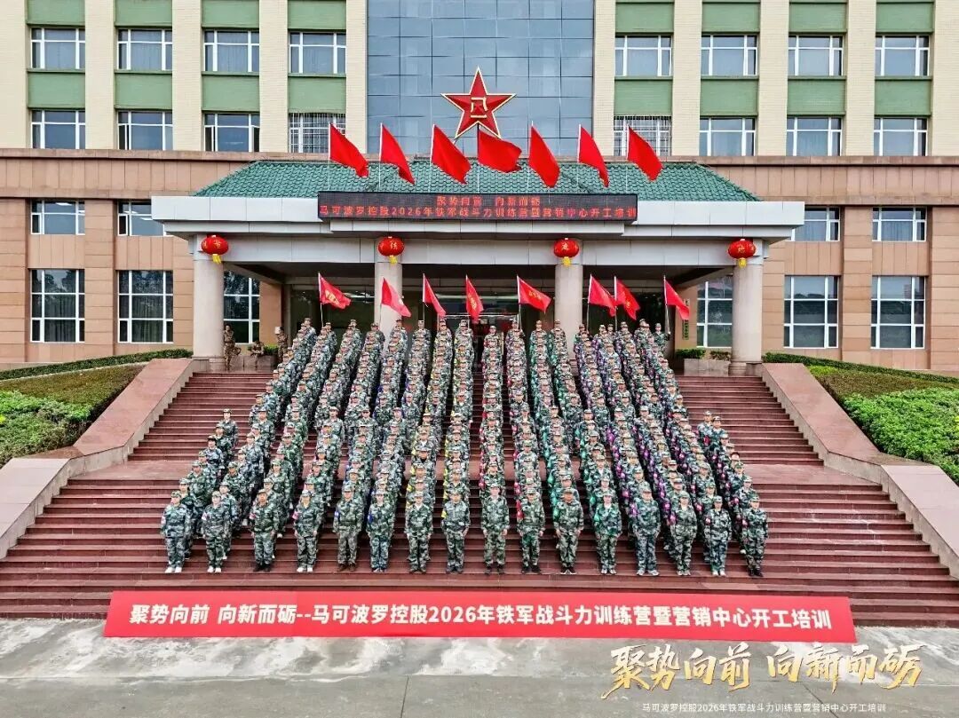 2月24日至26日,马可波罗控股以“聚势向前 向新而砺”为主题举行了为期三天的2026年铁军战斗力训练营暨营销中心开工培训。马可波罗控股总裁谢悦增,副总裁、营销中心总经理刘晃球及营销中心各部门负责人、骨干精英共同参加了此次活动。