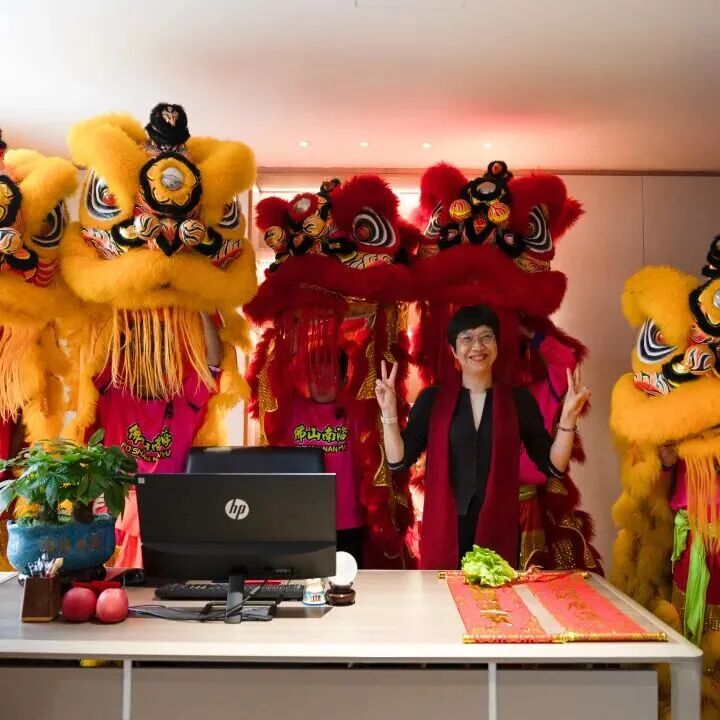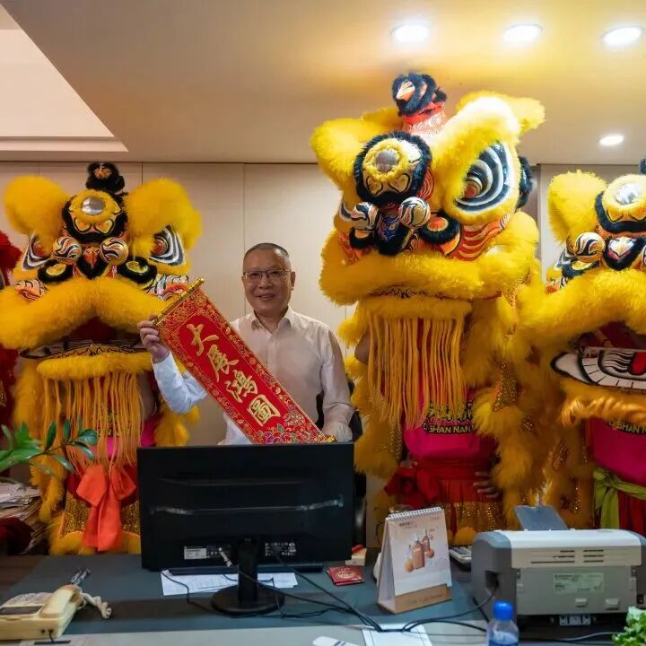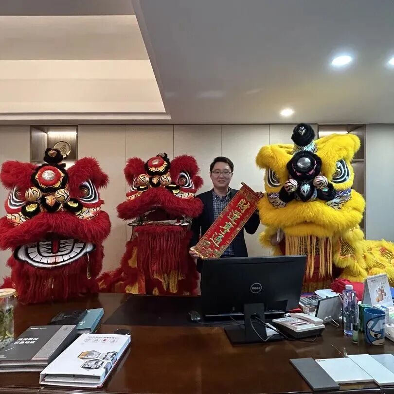 伴随着欢快的锣鼓声与真挚的祝福,醒狮依次走进各职能部门旺场送福,将“财气”与好运送到每一位员工身边。