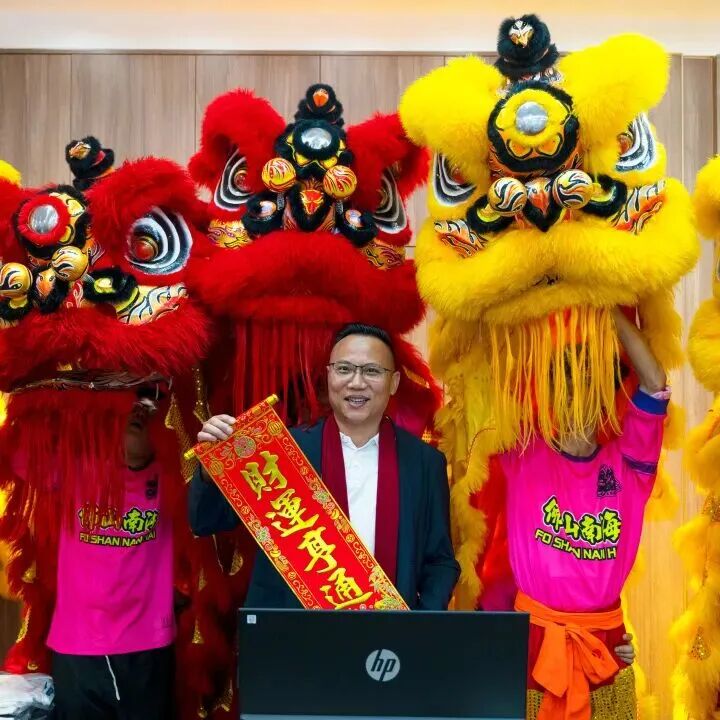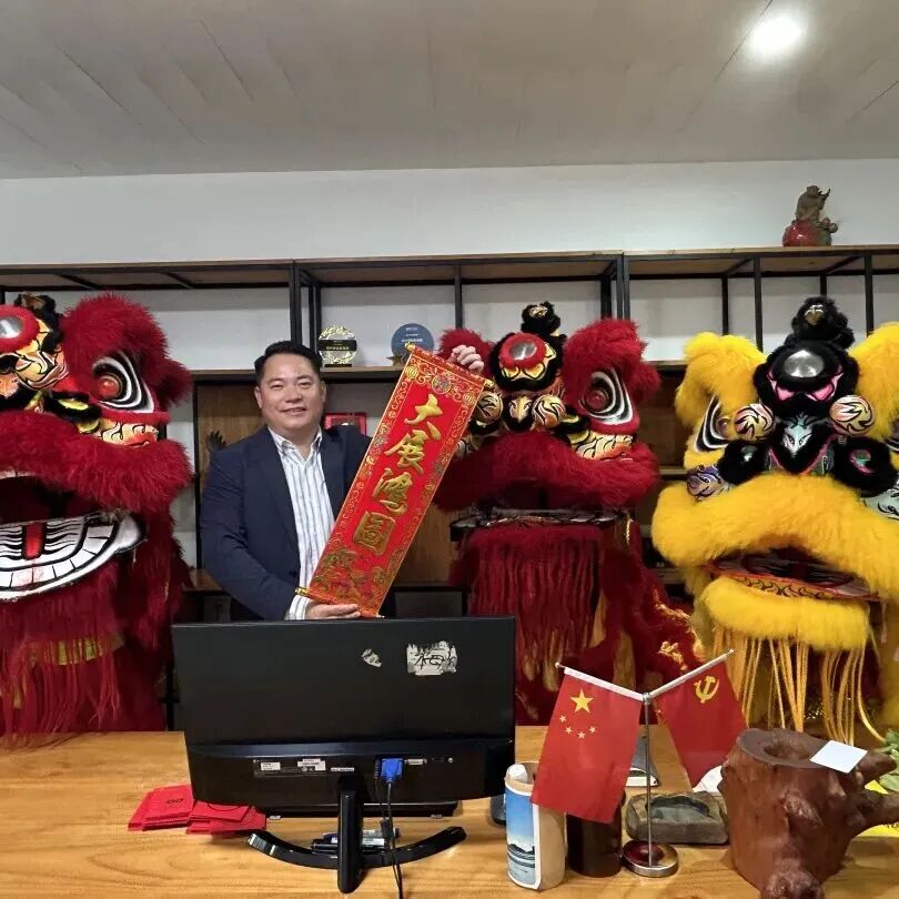 喜庆的锣鼓声与鞭炮声交织响起,醒狮腾跃起舞、姿态灵动,为鹰牌集团送上新春的美好祝福。