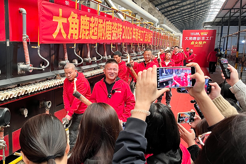 紧随其后,3月11日,大角鹿新丰工厂在中国国内正式点火投产。新丰工厂(中国生产基地)与马来西亚工厂(国际生产基地)形成有力呼应,共同构成大角鹿保障全球供应的“双引擎”。随着这两大关键节点的完成,大角鹿全球供应体系实现扩容再提速,整体出货能力得到倍数级跃升,为其“全球超耐磨瓷砖销量第一”的地位再添坚实支撑。