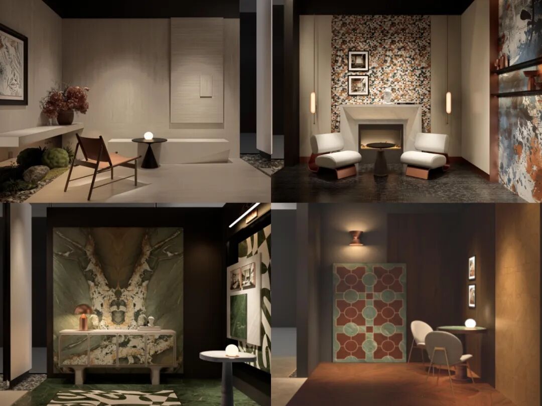 在技术层面,每个空间都承载着不同的工艺表达:“假日黄昏” 用罗马洞石岩板构建历史厚重感;“假日霓虹” 通过艺术金属系列展现光影变幻的戏剧性;“假日晨光” 依赖真石釉工艺还原奢石的静谧绿光;“假日午后”则应用木石组合的岩板营造一个温暖、放松、充满自然呼吸感的家居空间。这不仅是一次产品展示,更是一次关于时间与空间的沉浸式戏剧体验。
