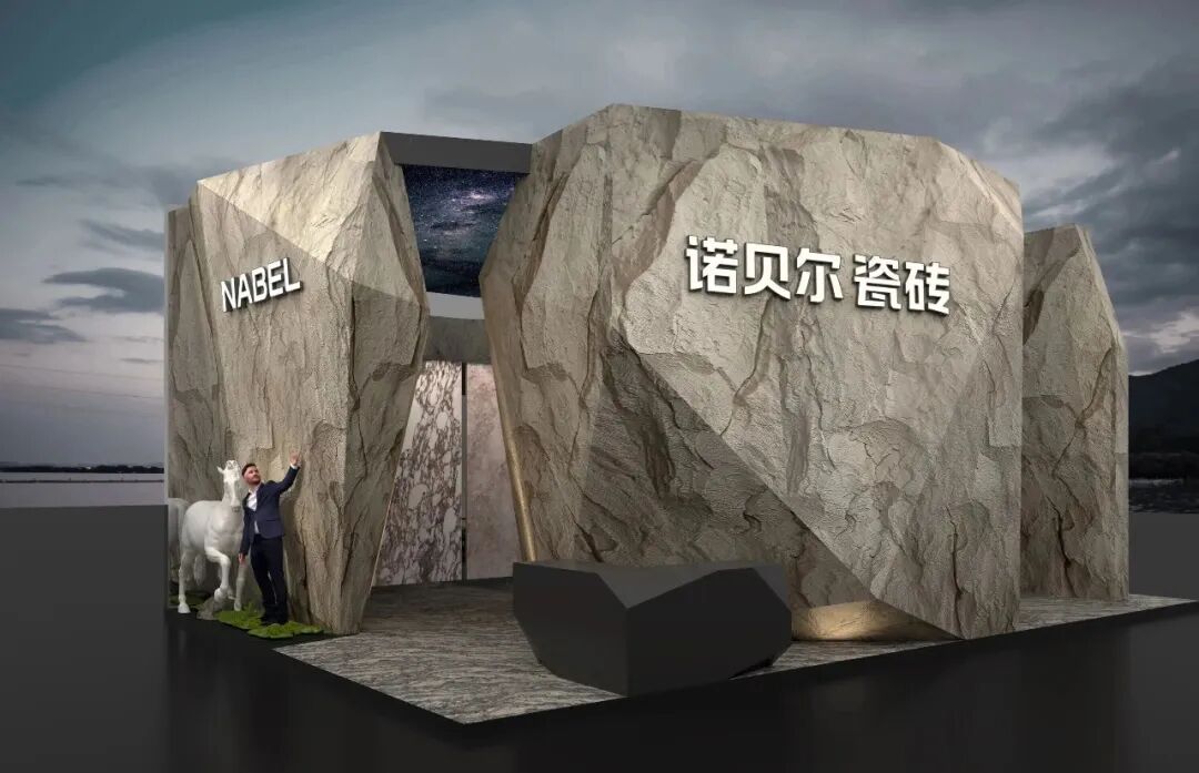 诺贝尔的“觀天”主题馆可能是本次展会最具诗意与震撼力的设计之一。外立面以岩板复刻大地肌理,如山体横断,致敬地质史诗。缓步穿行其间,指尖可触岩石的褶皱。