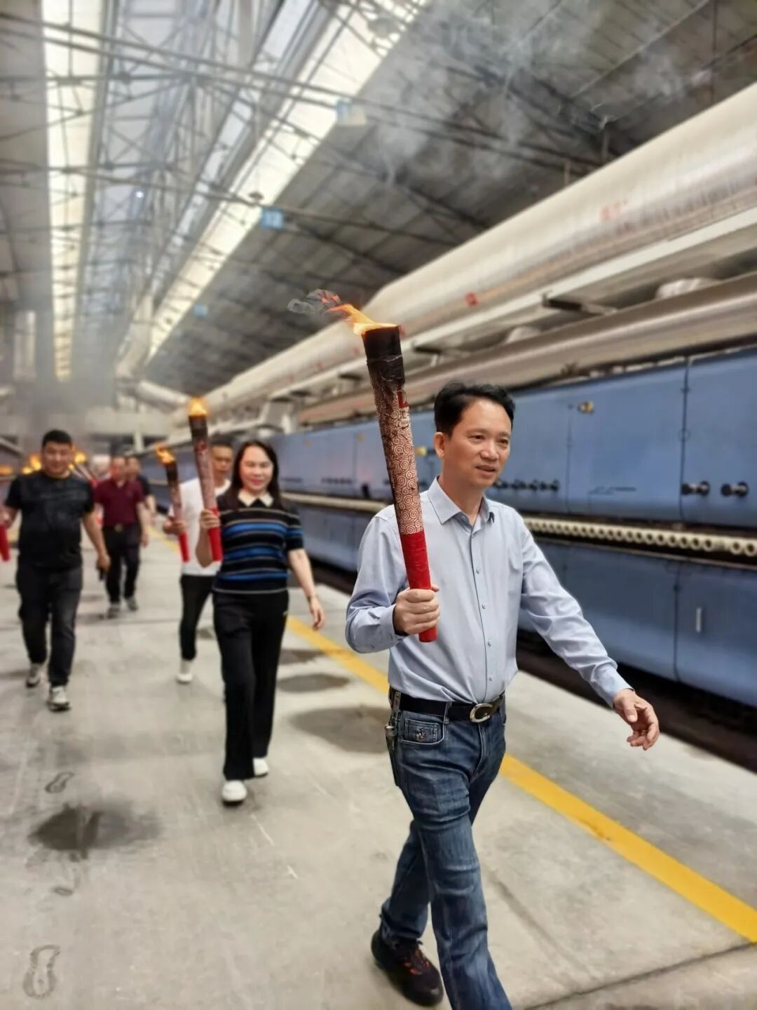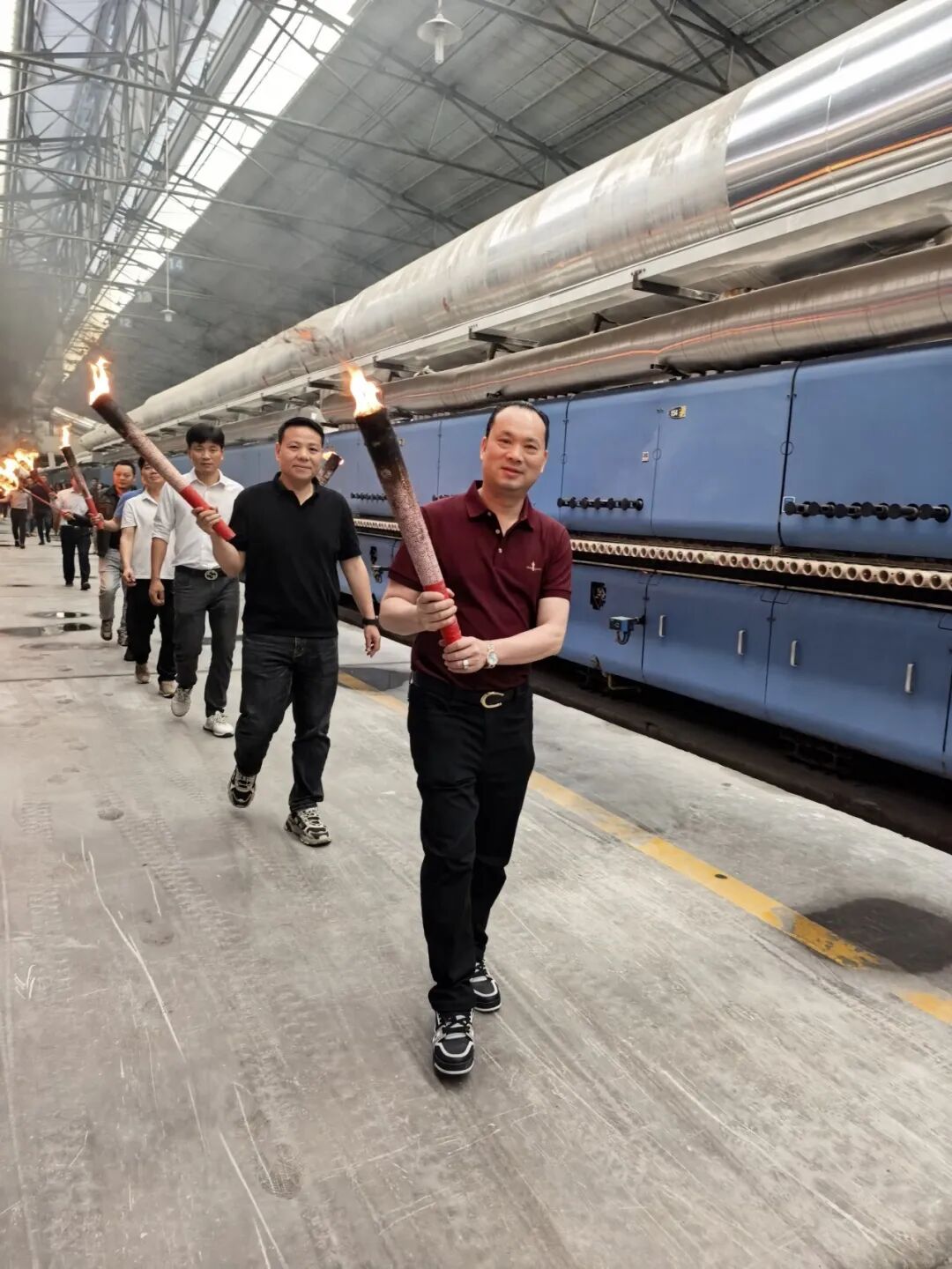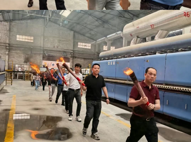 仪式现场气氛热烈,陶元帅高管团队及生产基地核心骨干神采奕奕,手执火炬,共同点燃了象征着希望与红火的窑炉之火。
