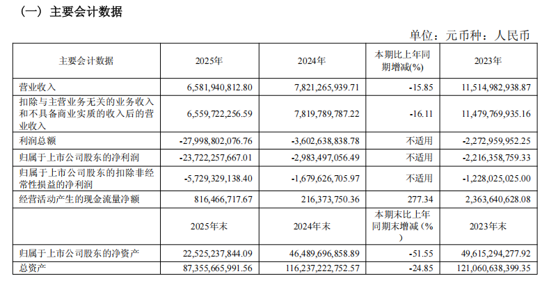 根据红星美凯龙2025年年度报告,其全年实现营业收入65.82亿元,同比下降15.85%,归母净利润亏损高达237.22亿元。