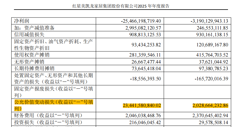 对于巨额亏损,红星美凯龙在公告中明确表示,亏损主因并非经营恶化,而是由非经常性会计处理和资产估值调整导致:公司对投资性房地产公允价值进行了大幅估值调整,形成约234.42亿元的公允价值变动损失,成为其亏损最大来源;叠加各类资产减值损失合计39亿元。