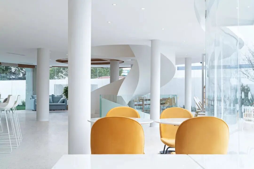 在这个项目中,面对江南水乡的基底,他们采用了“内退结构”与“反梁挑板”的高超技法。通过将结构柱外置、拆分建筑体量,原本厚重的建筑变得轻盈通透,仿佛真的“漂浮”于水面之上。