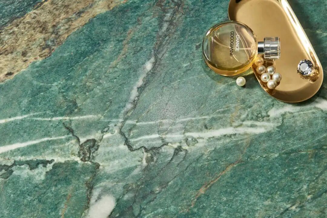 当前,消费者对石材类产品的光度认知已逐步升级,从传统全抛釉90度高光的刺眼感,转向更柔和、更舒适的哑光质感。基于此,云脉石S系列将表面光度精准控制在15度左右,光线反射柔和不刺眼