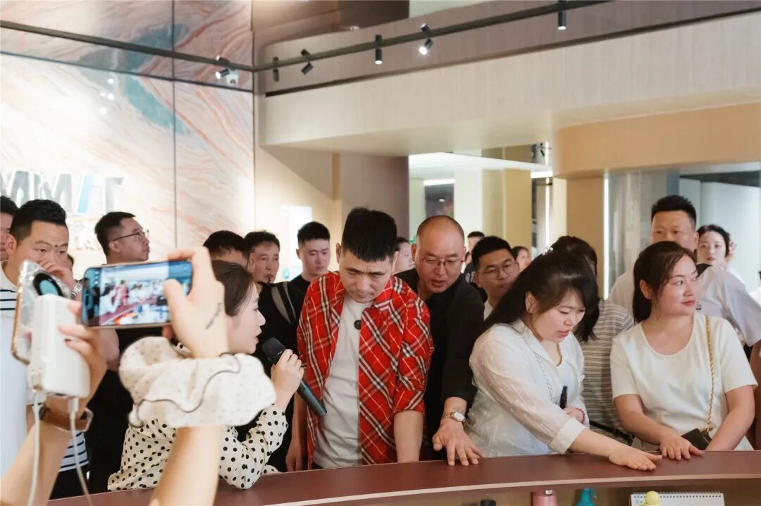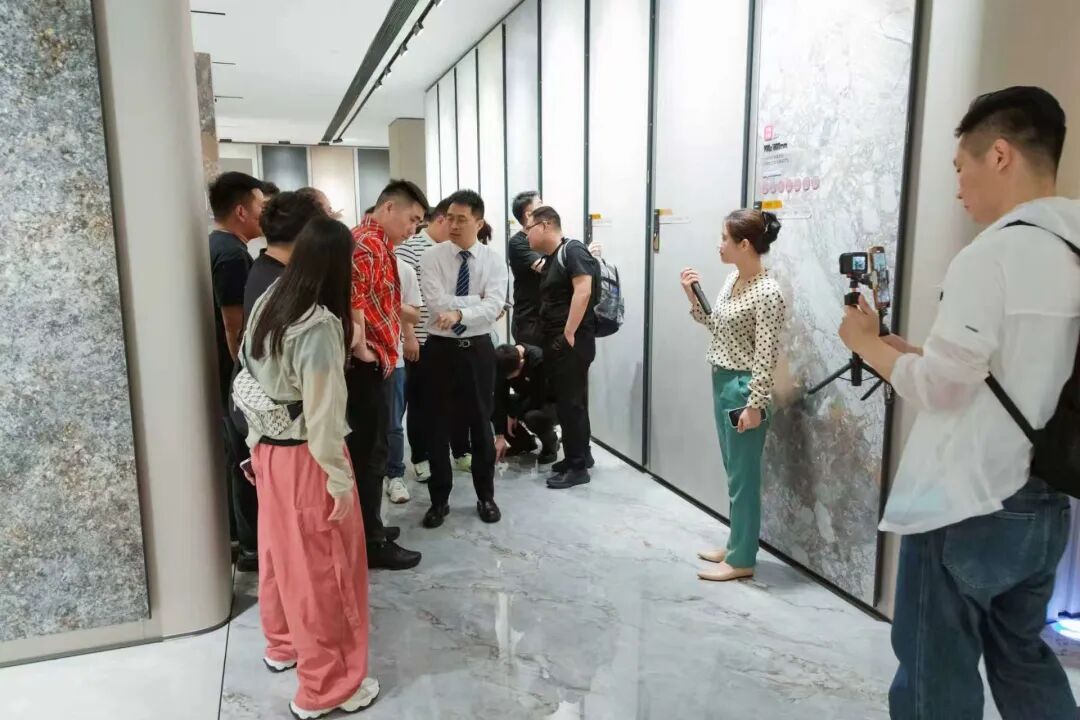 随后,团队沿着展厅专属参观动线,逐一探访了总部展厅的各个功能区域——从彰显品牌底蕴的大堂文化区,到展示年轻生活图鉴的案例区、终端应用样板区,再到岩板产品应用及选材展示区、高质交付展示区、岩板空间应用体验区等,全方位领略萨米特“年轻态”的品牌内核。